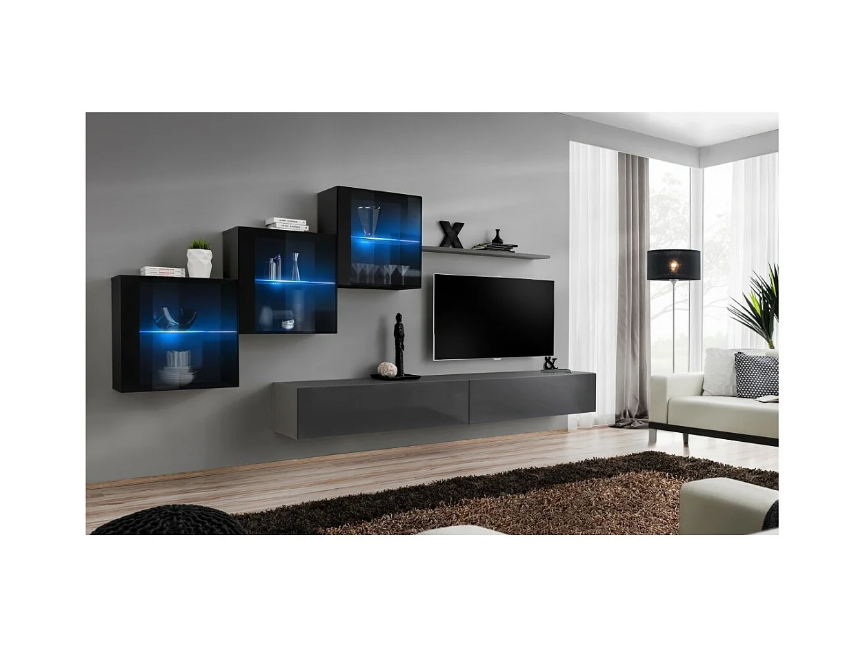 Wohnzimmermöbelset SWITCH XX Design, in glänzendem Grau und Schwarz.
