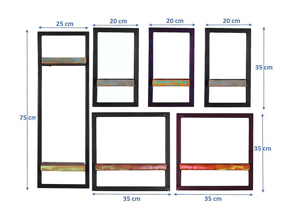 Wohnzimmerregal Set im Shabby Chic Stil Recyclingholz & Metall (sechsteilig)