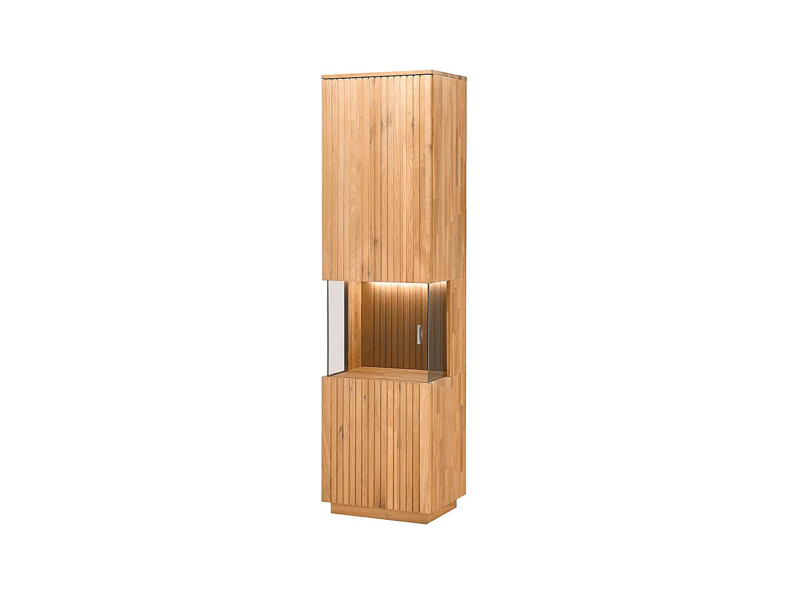 Wohnzimmerschrank mit Glastür aus Wildeiche Massivholz LED Beleuchtung
