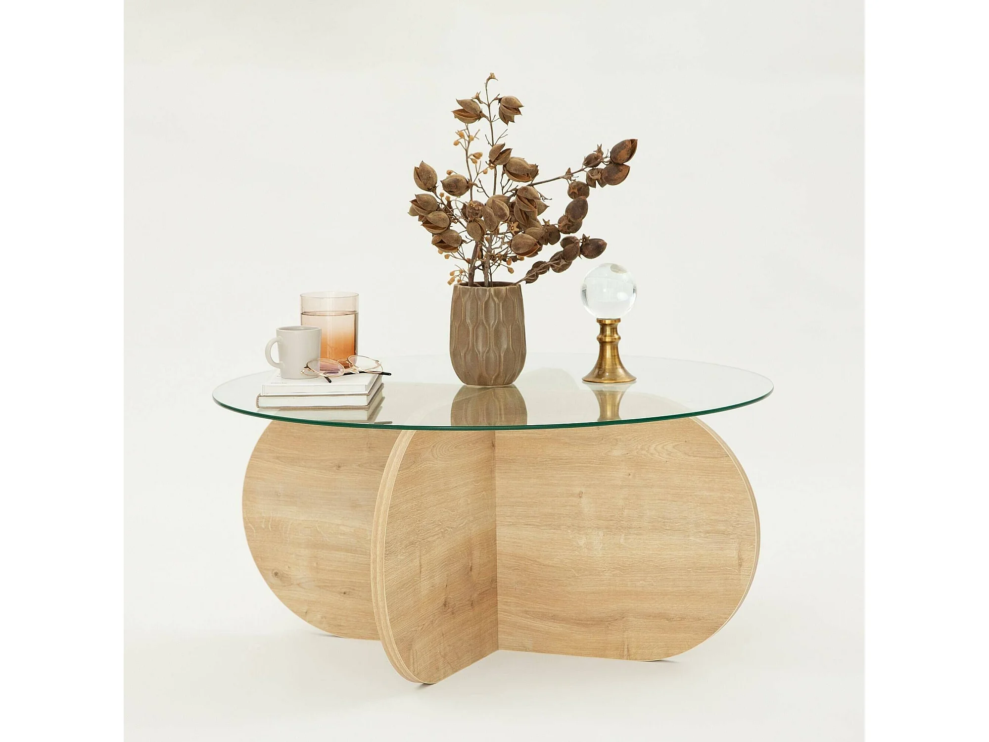 Wohnzimmertisch Dalcibiad, Niedriger Wohnzimmertisch, Kaffeeregal, Couchtisch für Sofa, 75x75h35 cm, Eiche