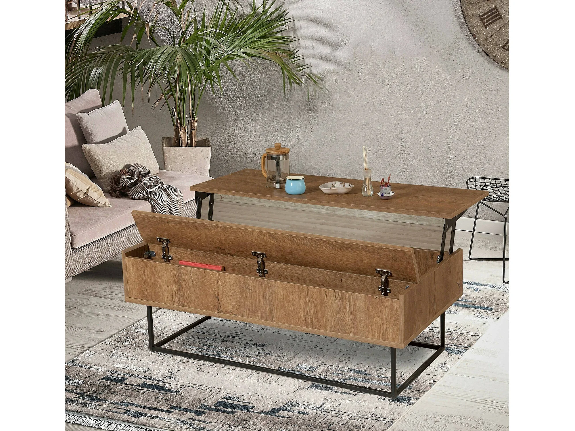 Wohnzimmertisch Dboc, Niedriger Wohnzimmertisch, Kaffeeregal, Couchtisch für Sofa, 120x60h43 cm, Walnuss und Schwarz