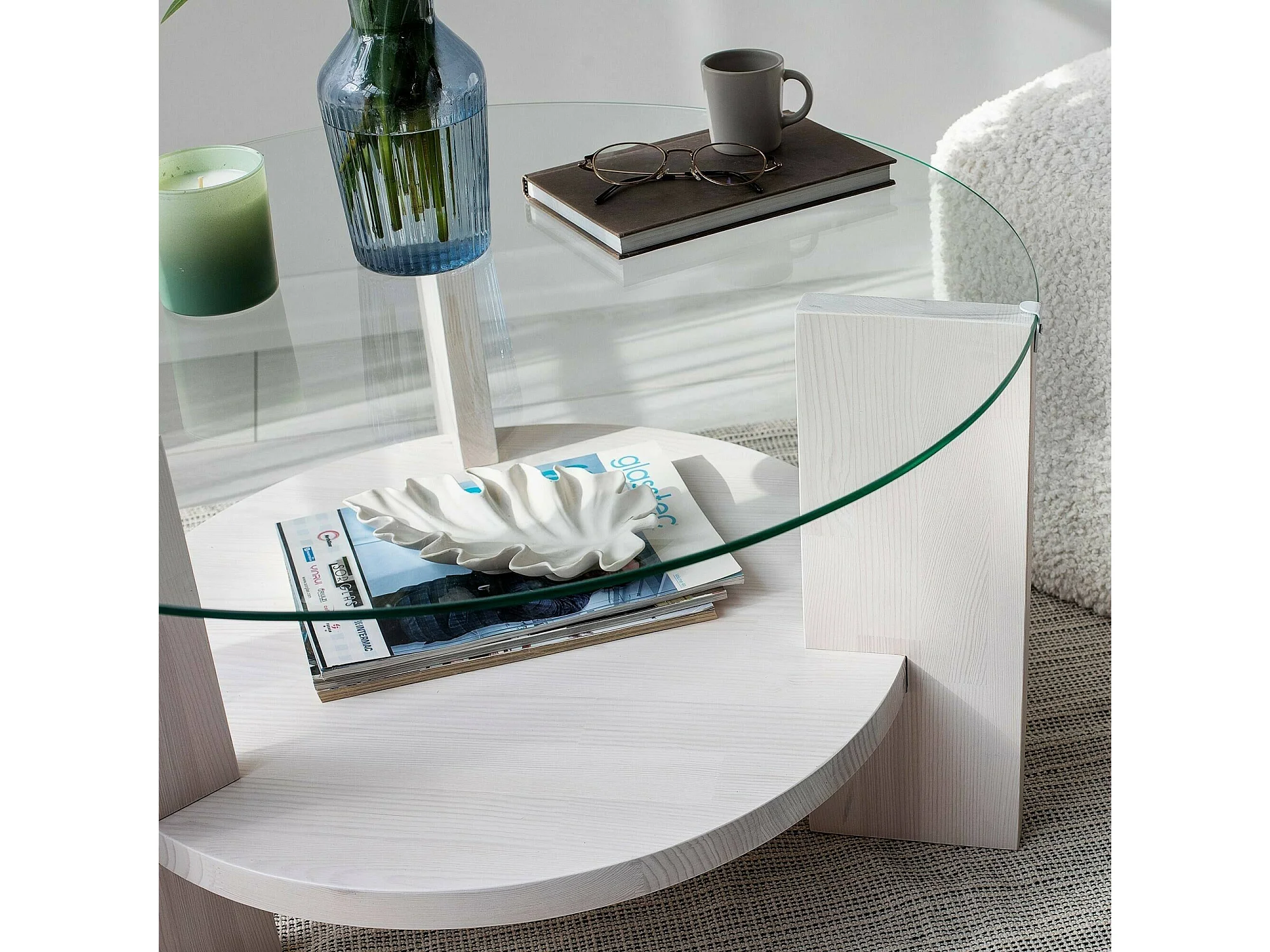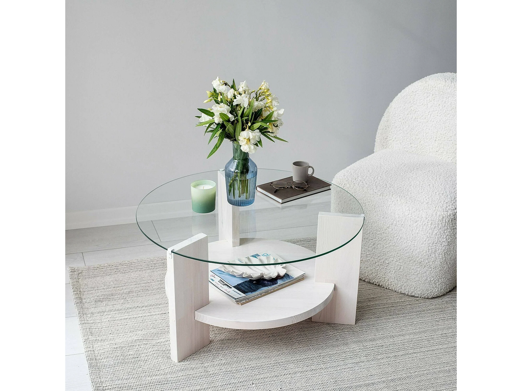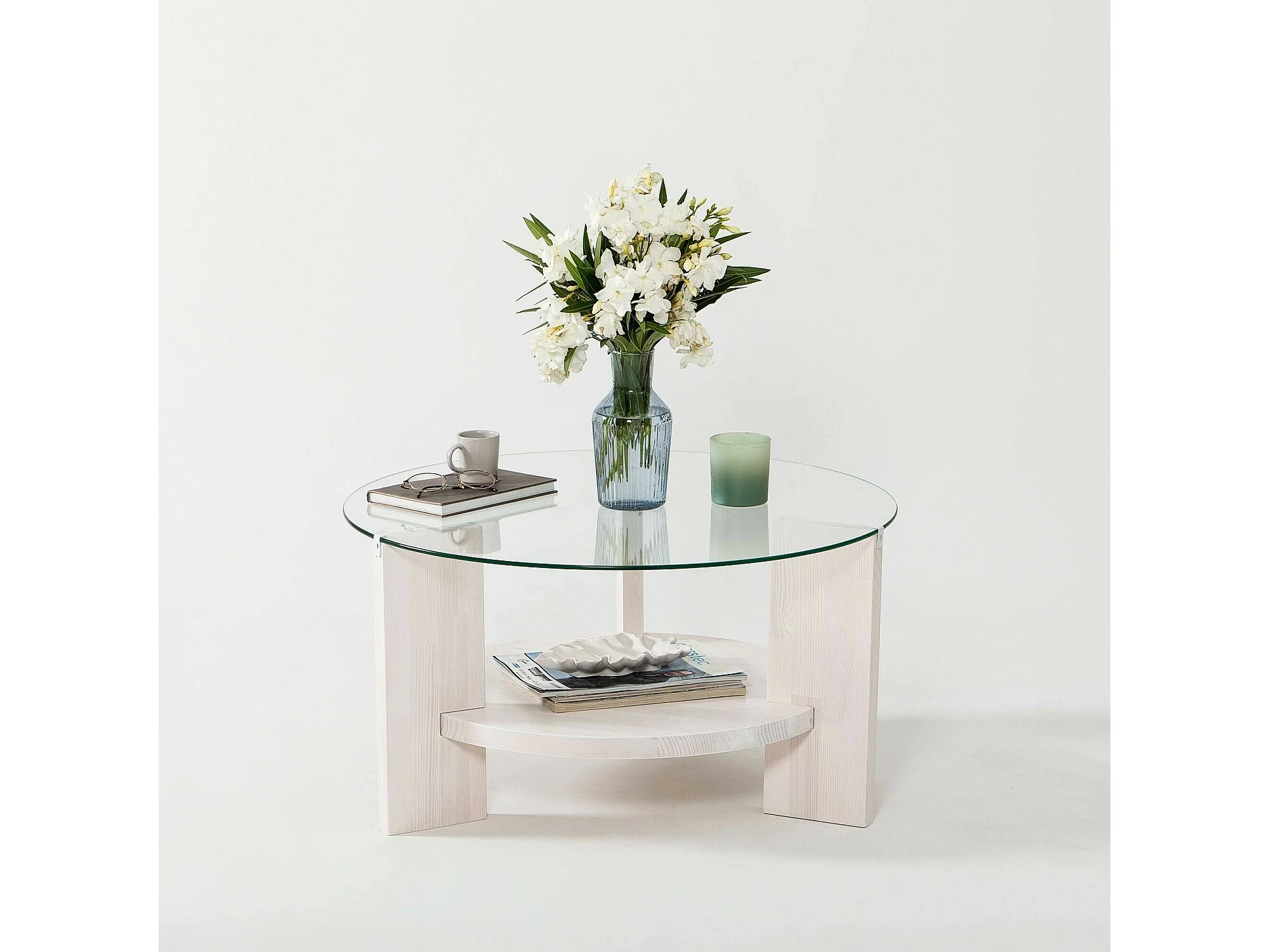 Wohnzimmertisch Dcaporal, Niedriger Wohnzimmertisch, Kaffeeregal, Couchtisch für Sofa, 75x75h40 cm, Weiß