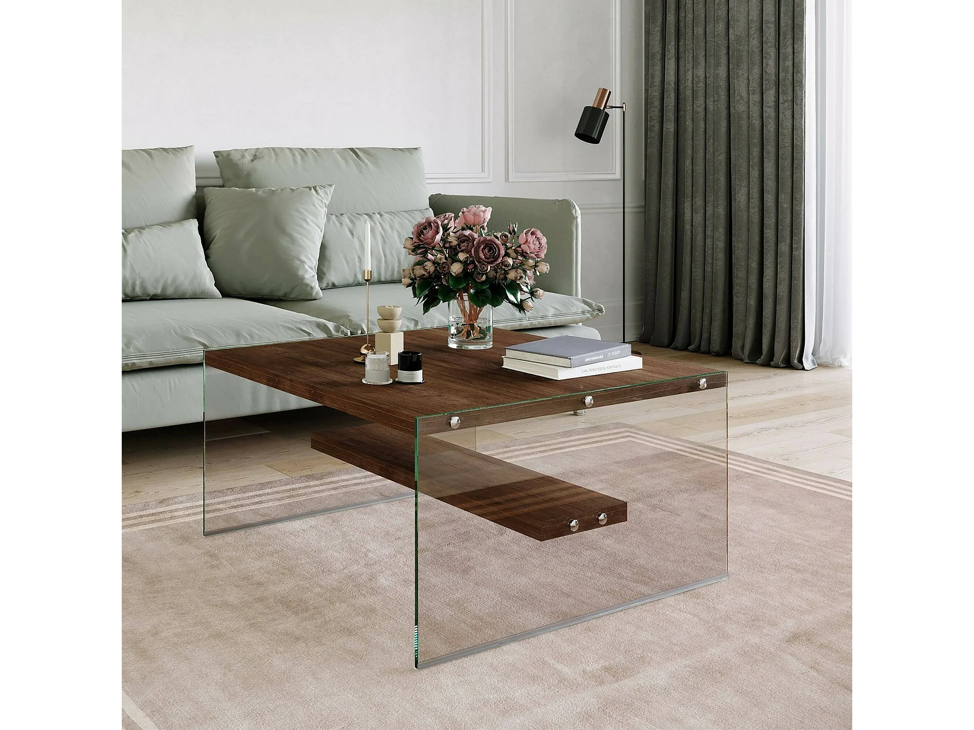 Wohnzimmertisch Dembél, Niedriger Wohnzimmertisch, Kaffeeregal, Couchtisch für Sofa, 75x75h40 cm, Nussbaum