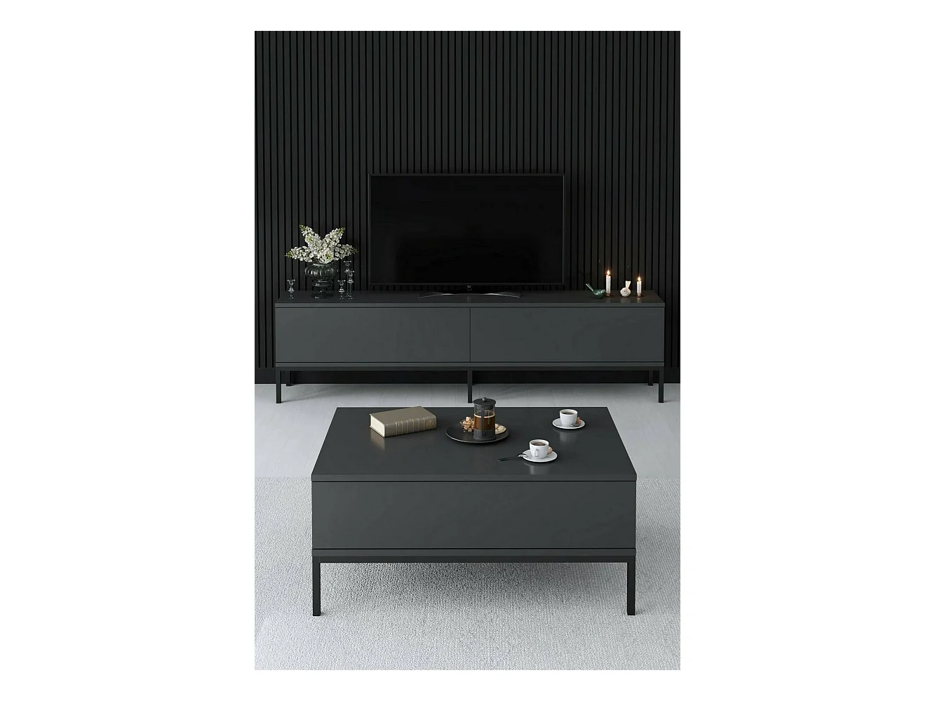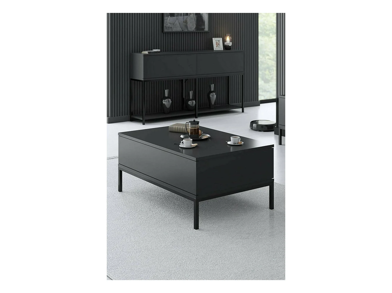 Wohnzimmertisch Dfiamozz, Niedriger Wohnzimmertisch, Kaffeeregal, Couchtisch für Sofa, 90x60h40 cm, Anthrazit und Schwarz