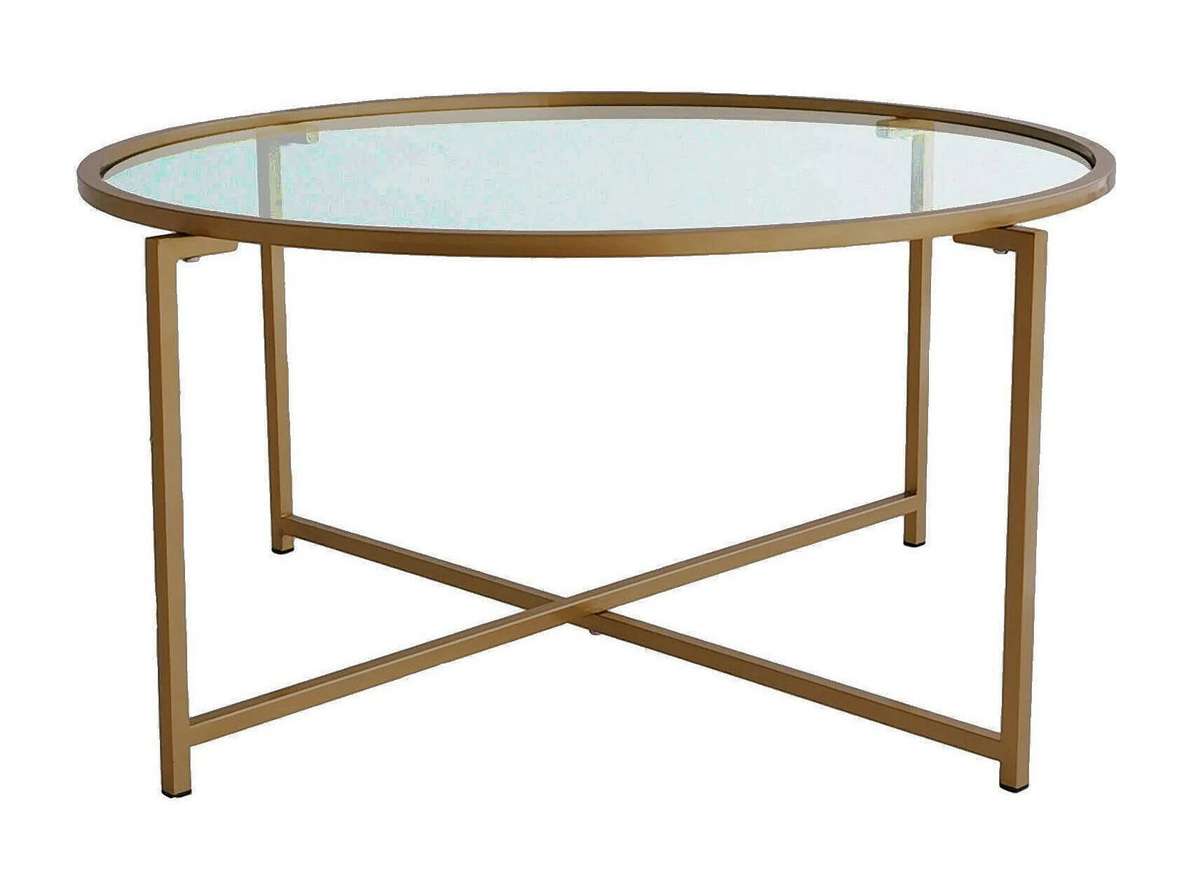 Wohnzimmertisch Dhateboe, Niedriger Wohnzimmertisch, Kaffeeregal, Couchtisch für Sofa, 83x83h40 cm, Gold und Taupe