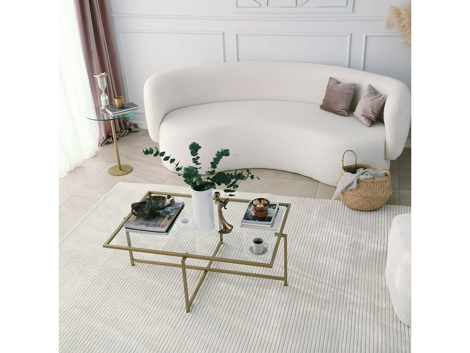 Wohnzimmertisch Dionit, Niedriger Wohnzimmertisch, Kaffeeregal, Couchtisch für Sofa, 94x64h35 cm, Gold