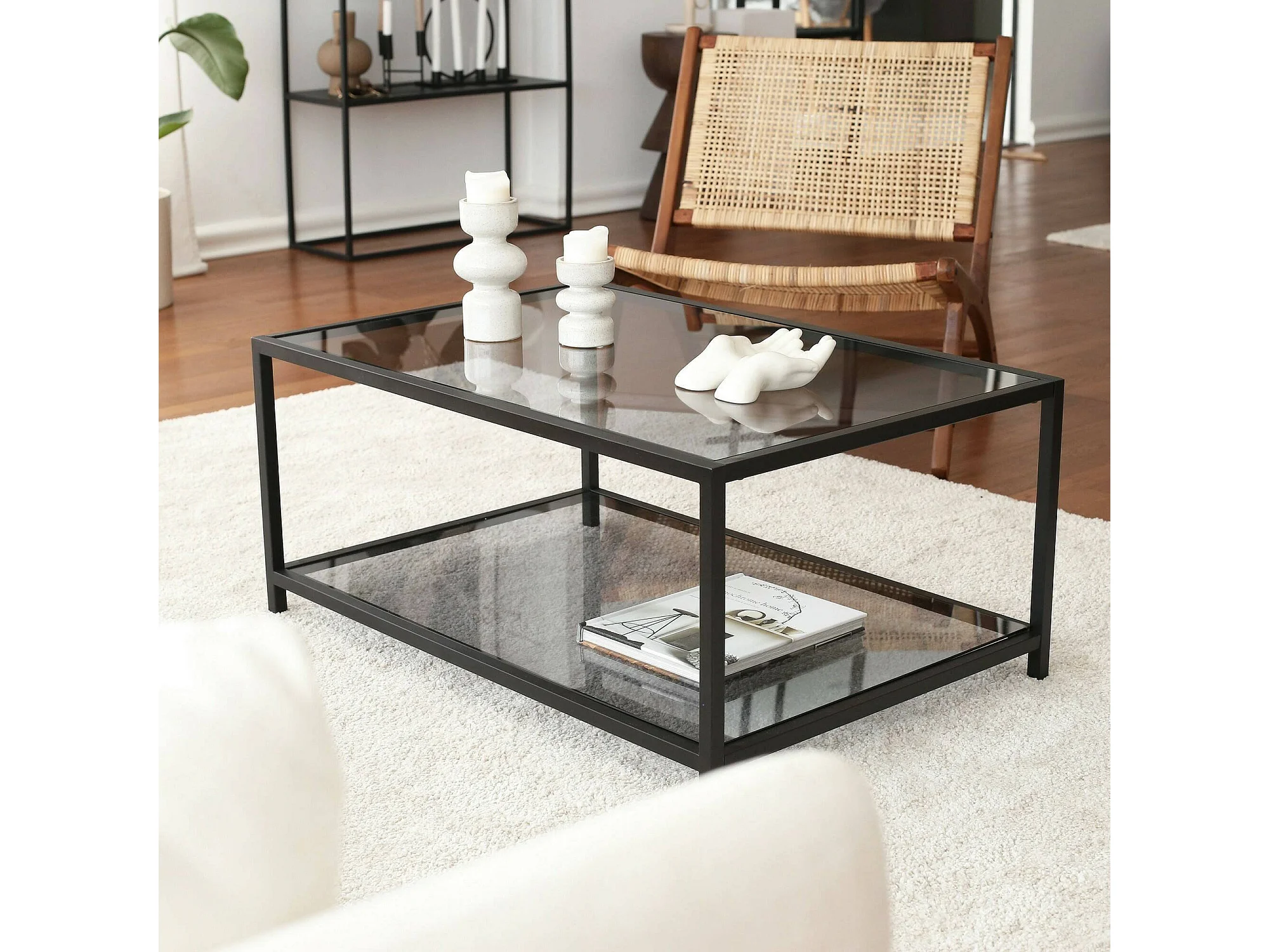Wohnzimmertisch Djureski, Niedriger Wohnzimmertisch, Kaffeeregal, Couchtisch für Sofa, 90x60h40 cm, Schwarz