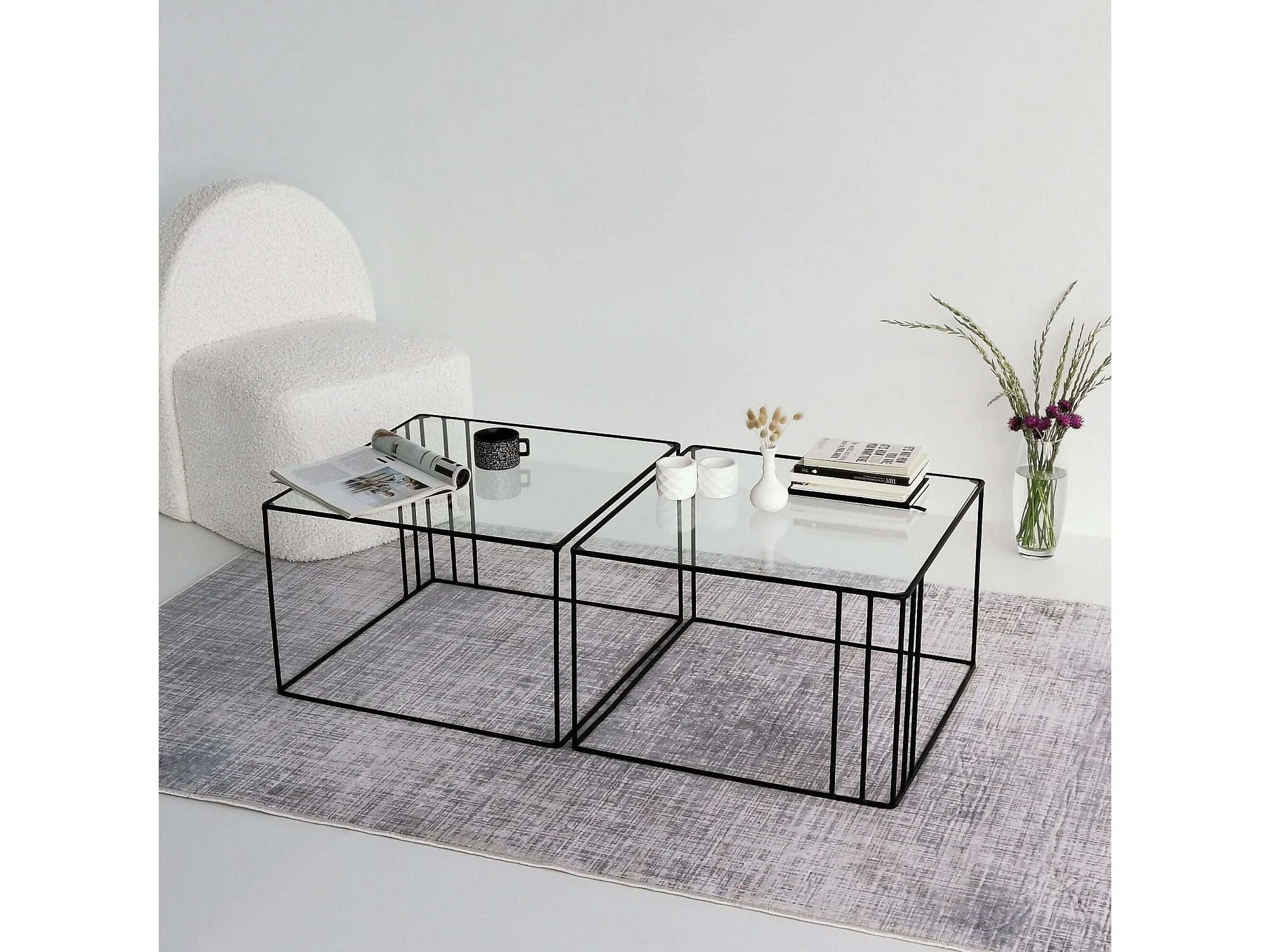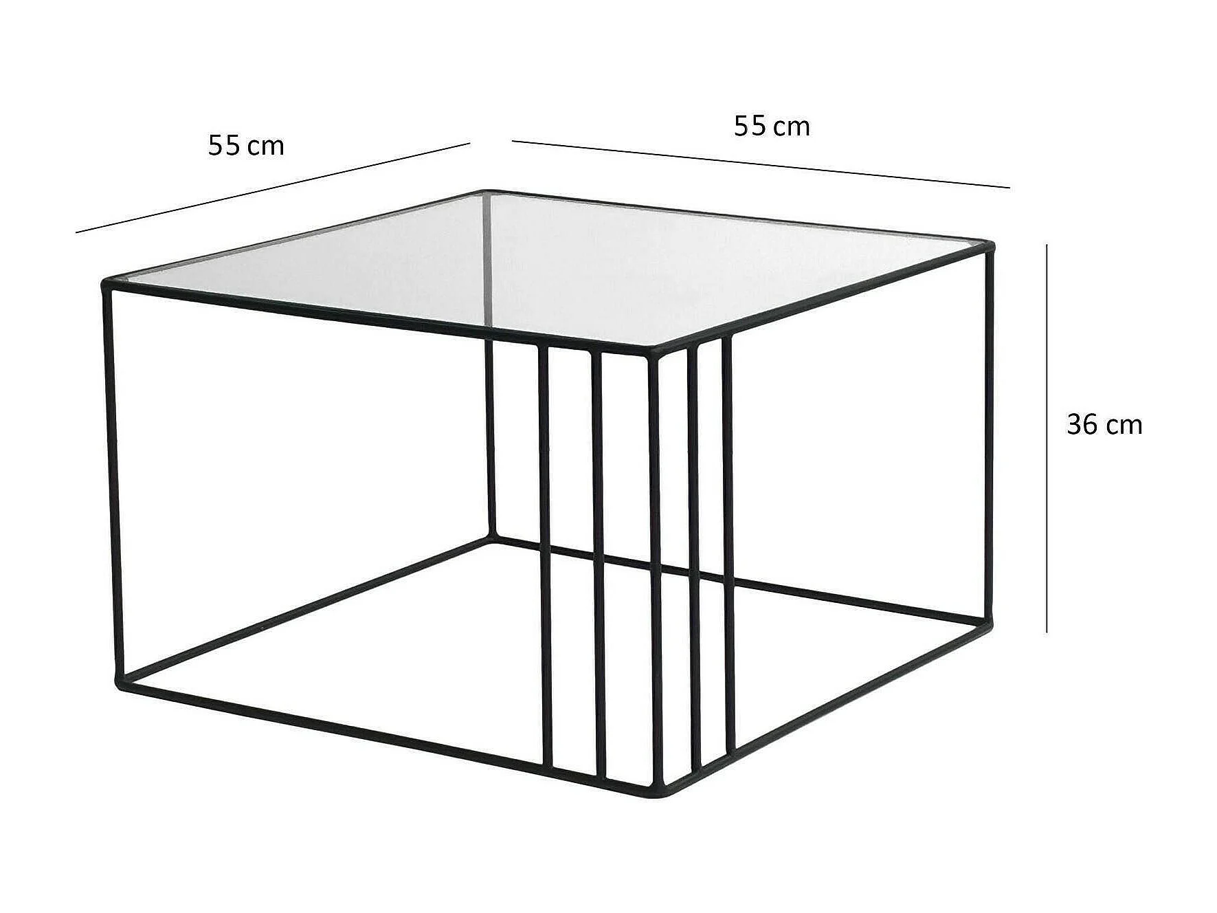 Wohnzimmertisch Dkaramok, Niedriger Wohnzimmertisch, Kaffeeregal, Couchtisch für Sofa, 55x55h36 cm, Schwarz
