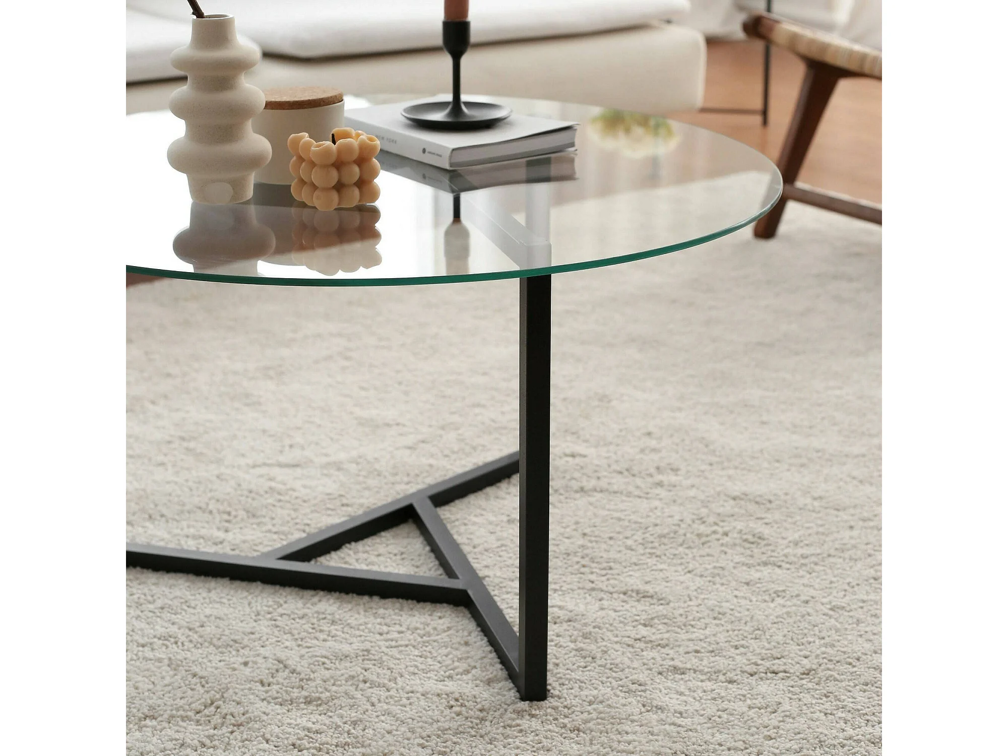 Wohnzimmertisch Dmaccopp, Niedriger Wohnzimmertisch, Kaffeeregal, Couchtisch für Sofa, 75x75h42 cm, Schwarz und Transparent