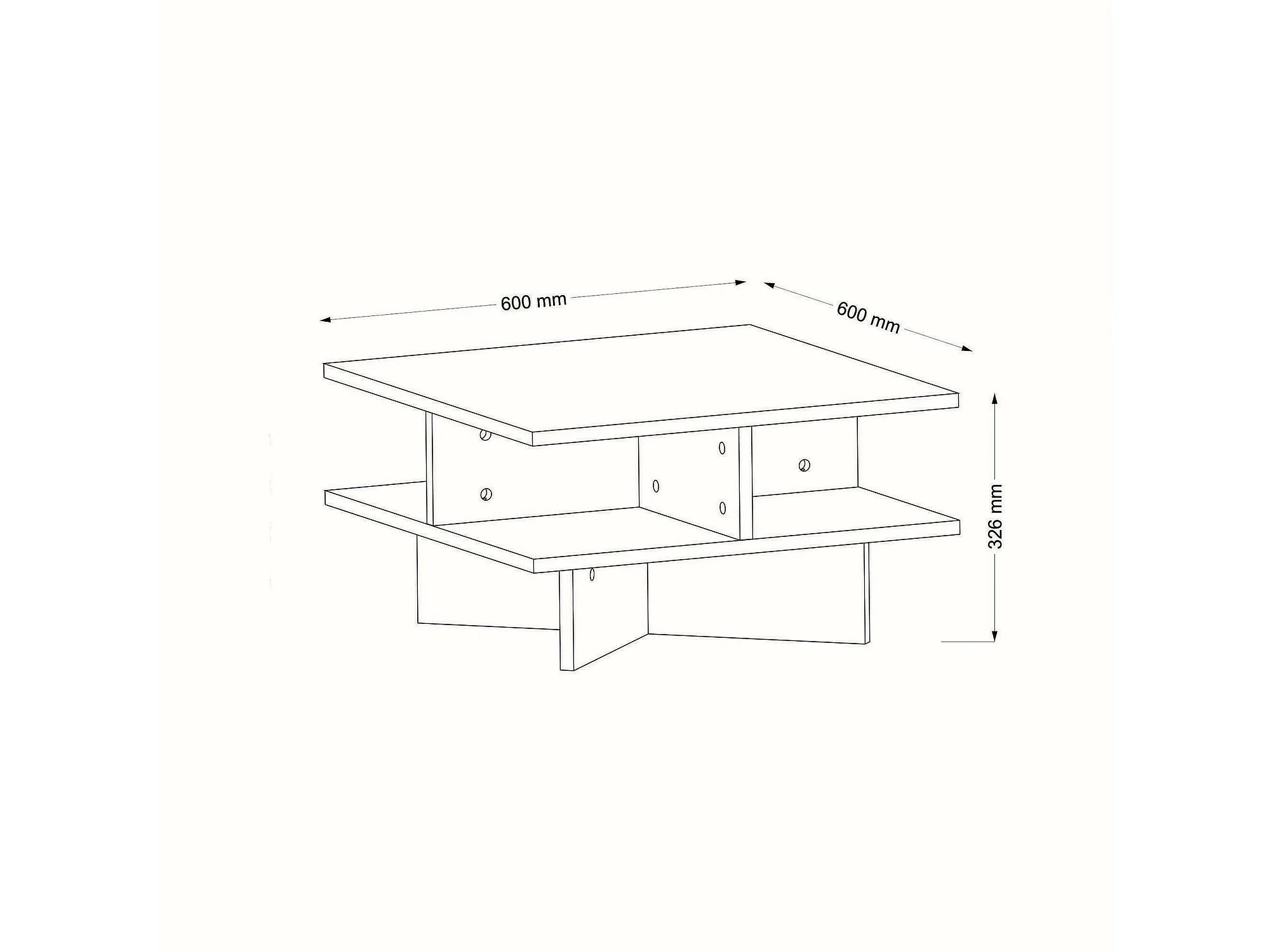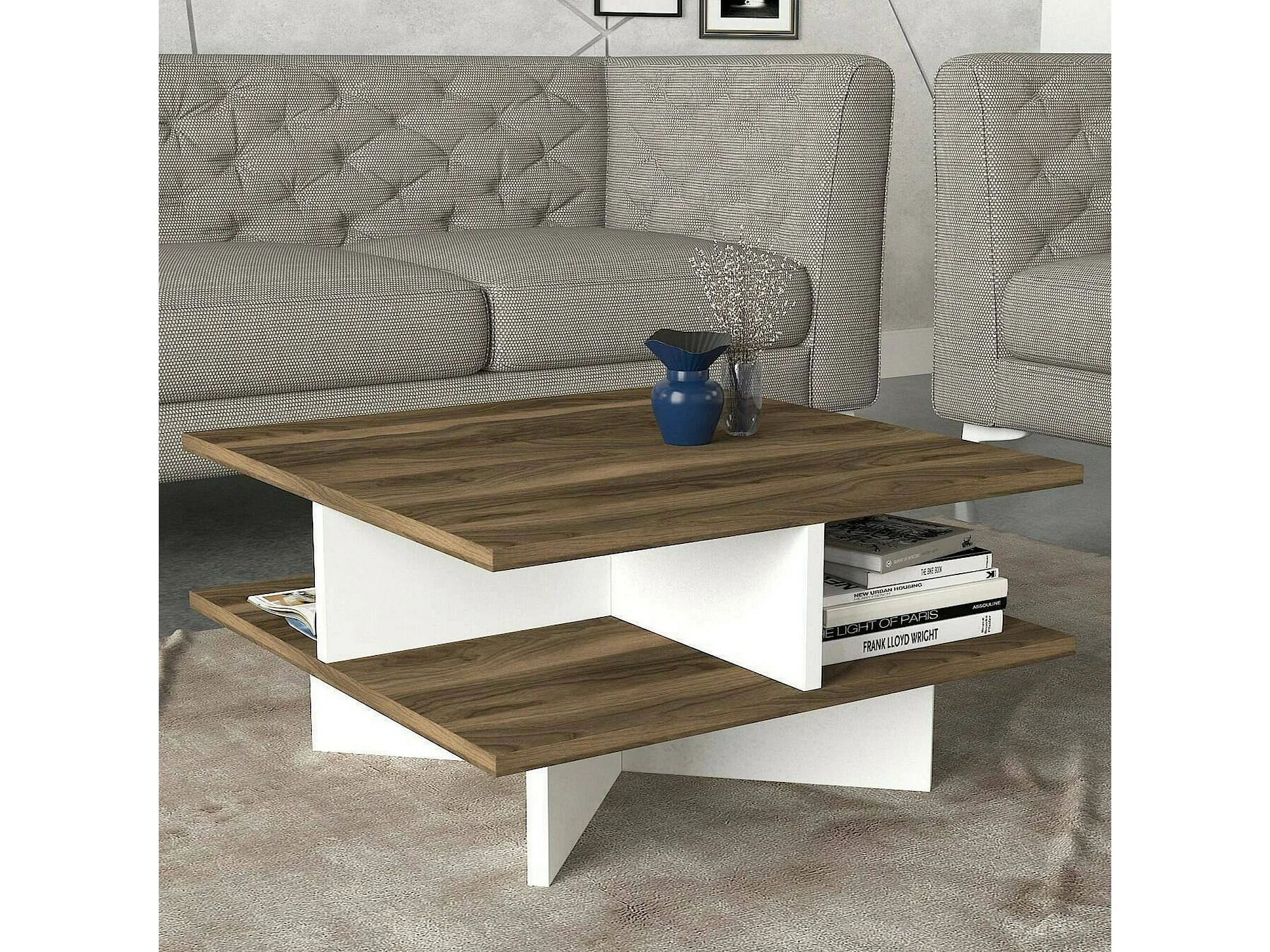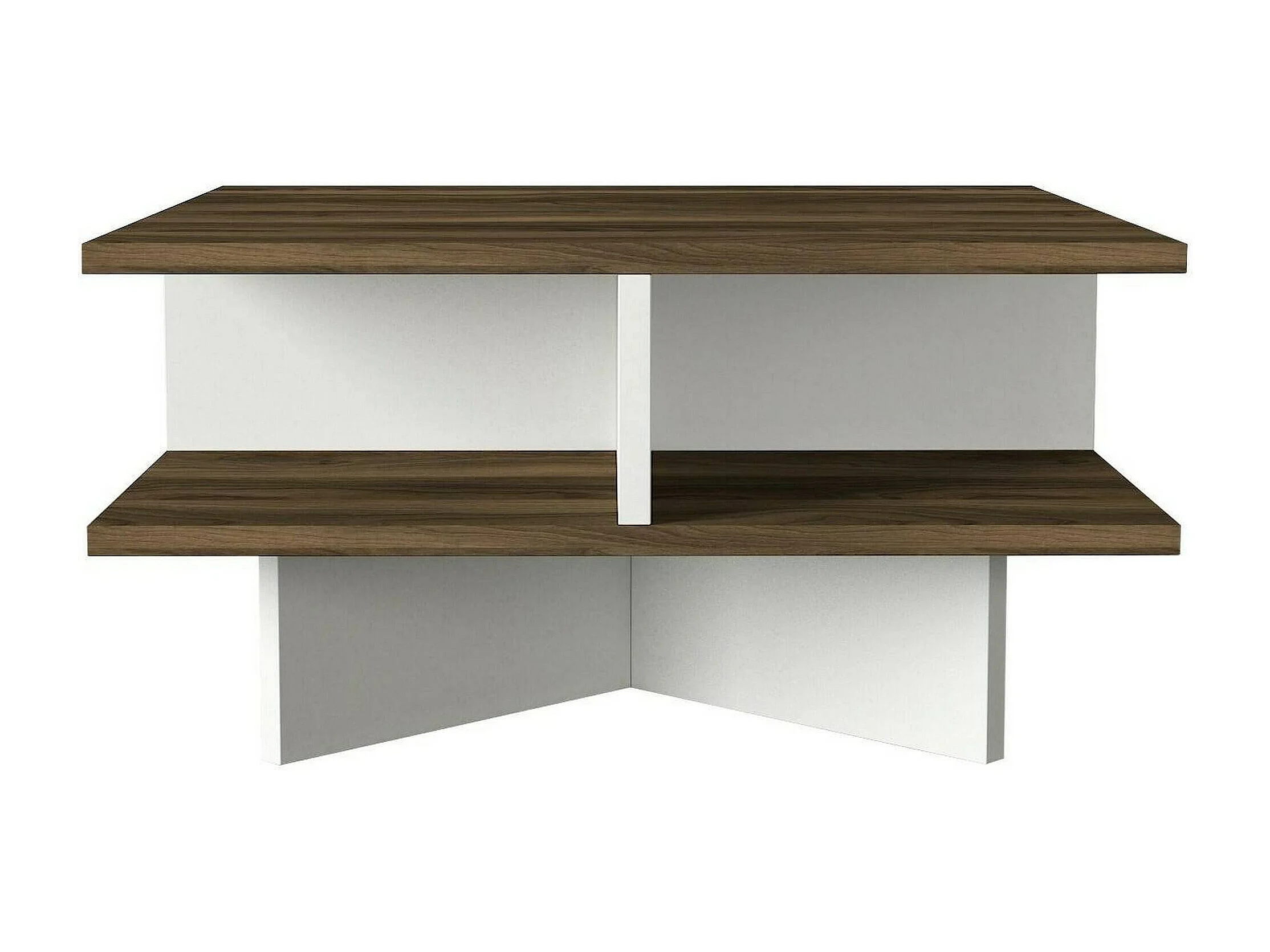 Wohnzimmertisch Dpalmier, Niedriger Wohnzimmertisch, Kaffeeregal, Couchtisch für Sofa, 60x60h31 cm, Walnuss und Weiß