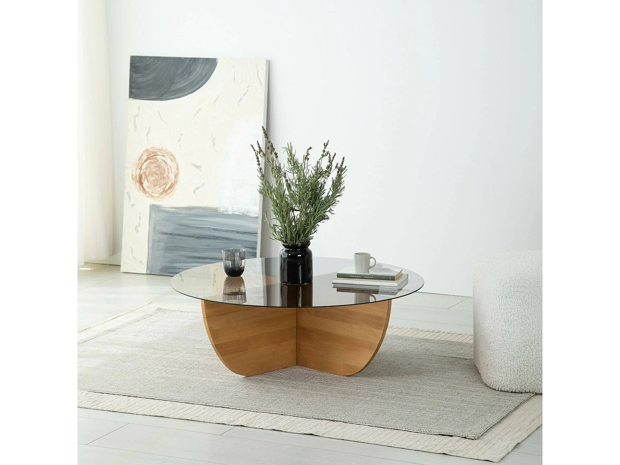 Wohnzimmertisch Dpere, Niedriger Wohnzimmertisch, Kaffeeregal, Couchtisch für Sofa, 90x90h30 cm, Eiche