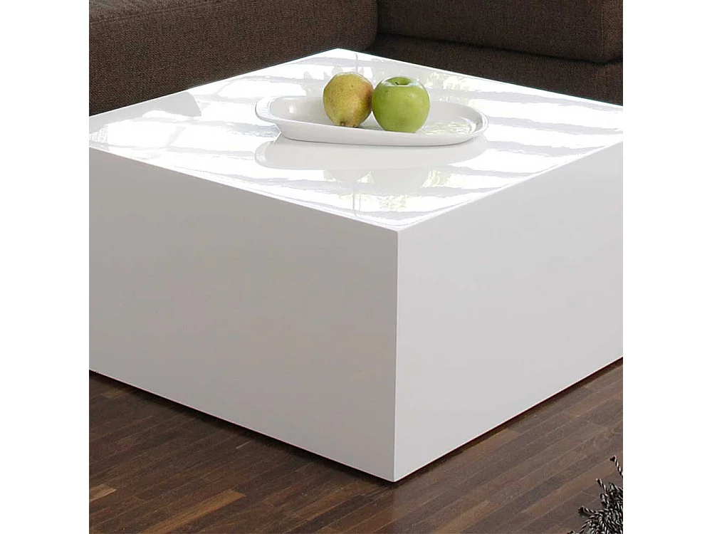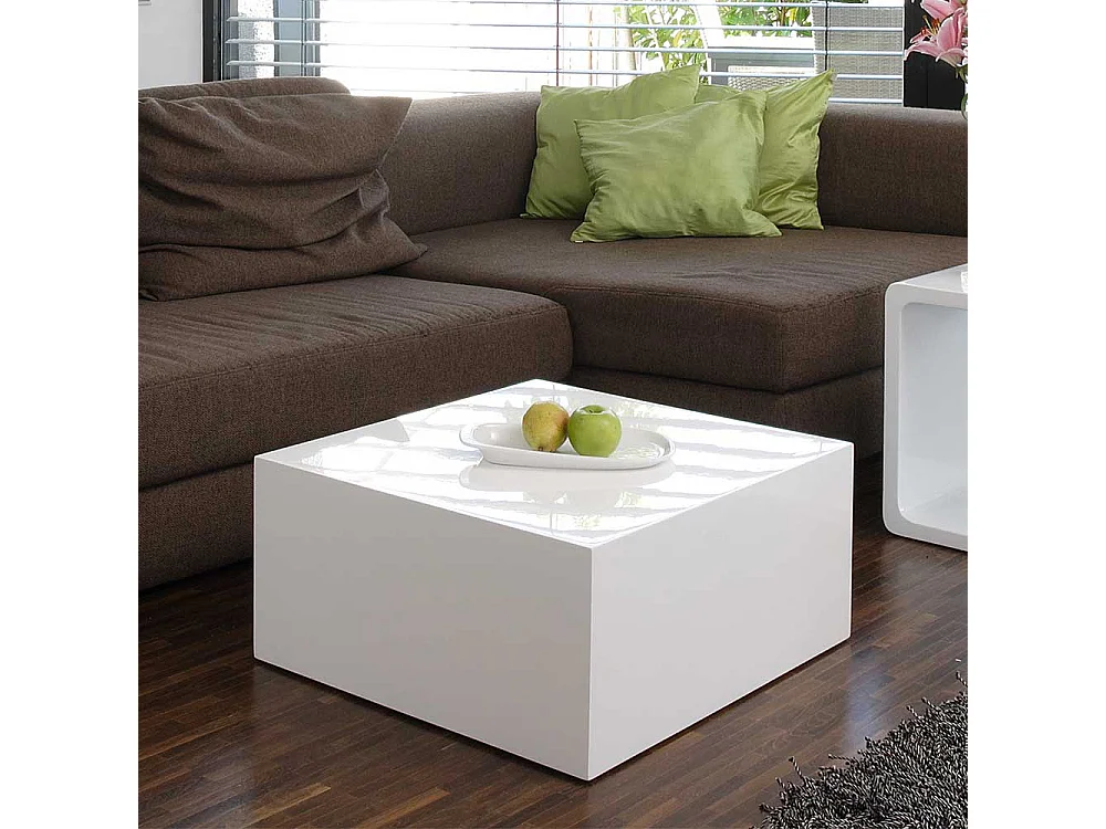 Wohnzimmertisch in Block Optik Weiß Hochglanz