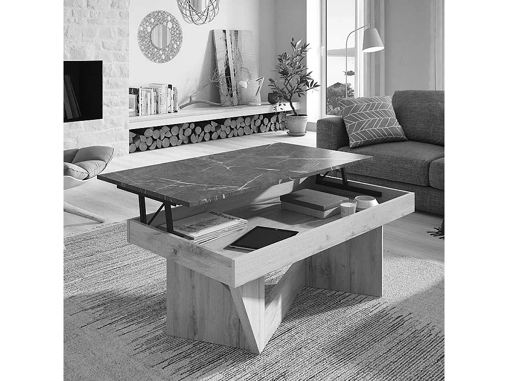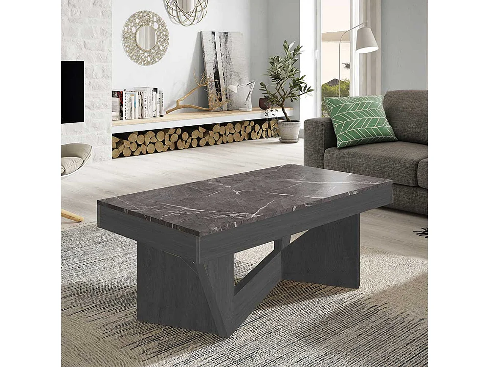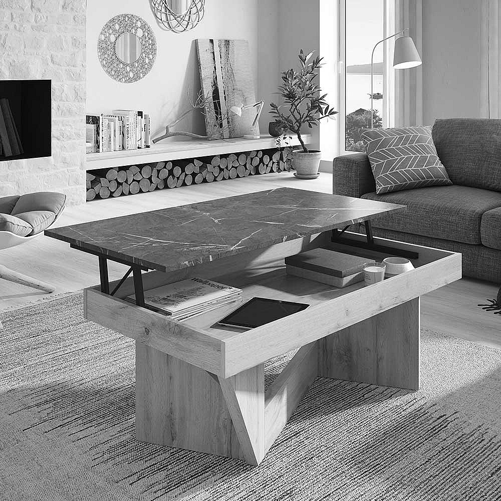 Wohnzimmertisch in Schwarzgrau und Dunkelgrau hochklappbarer Tischplatte
