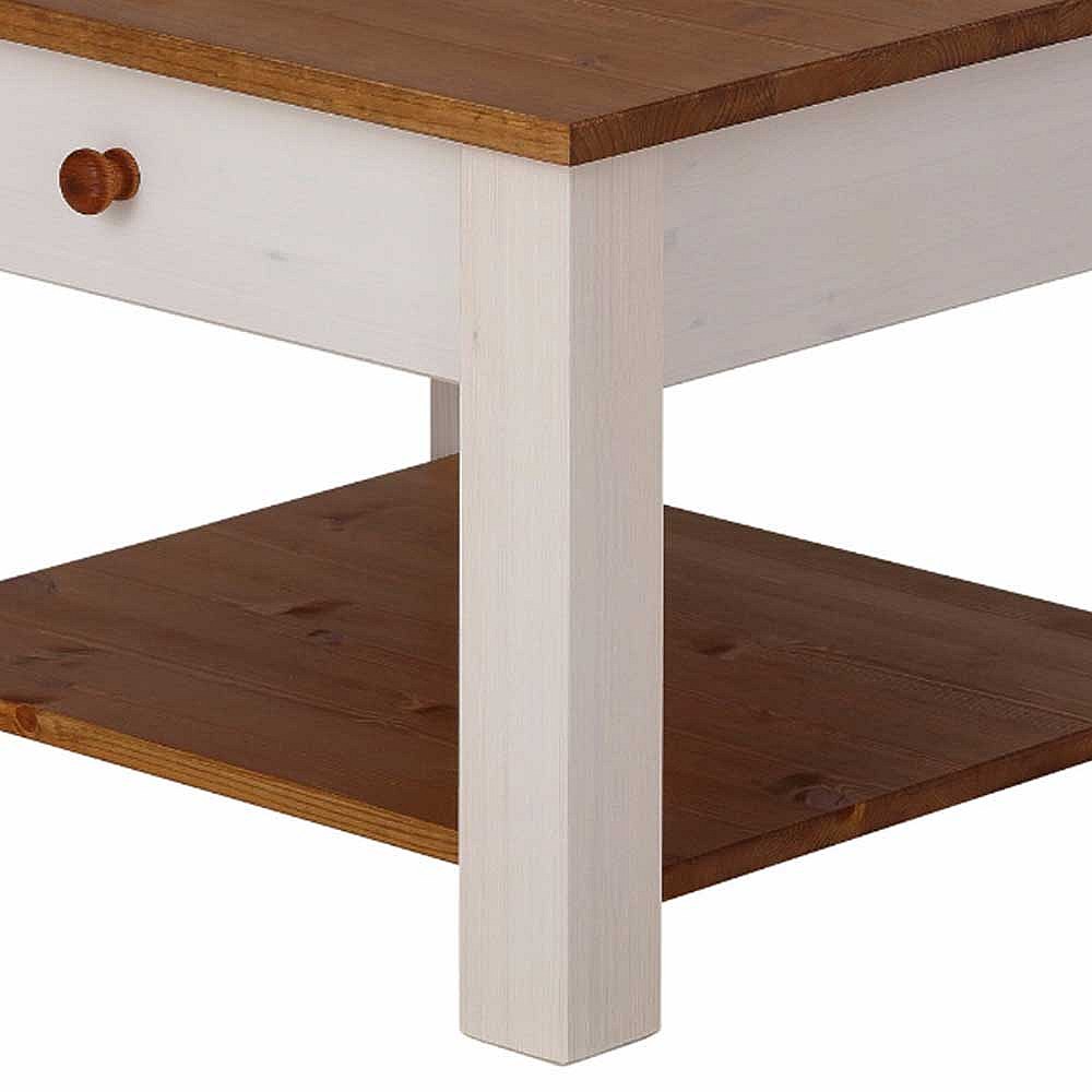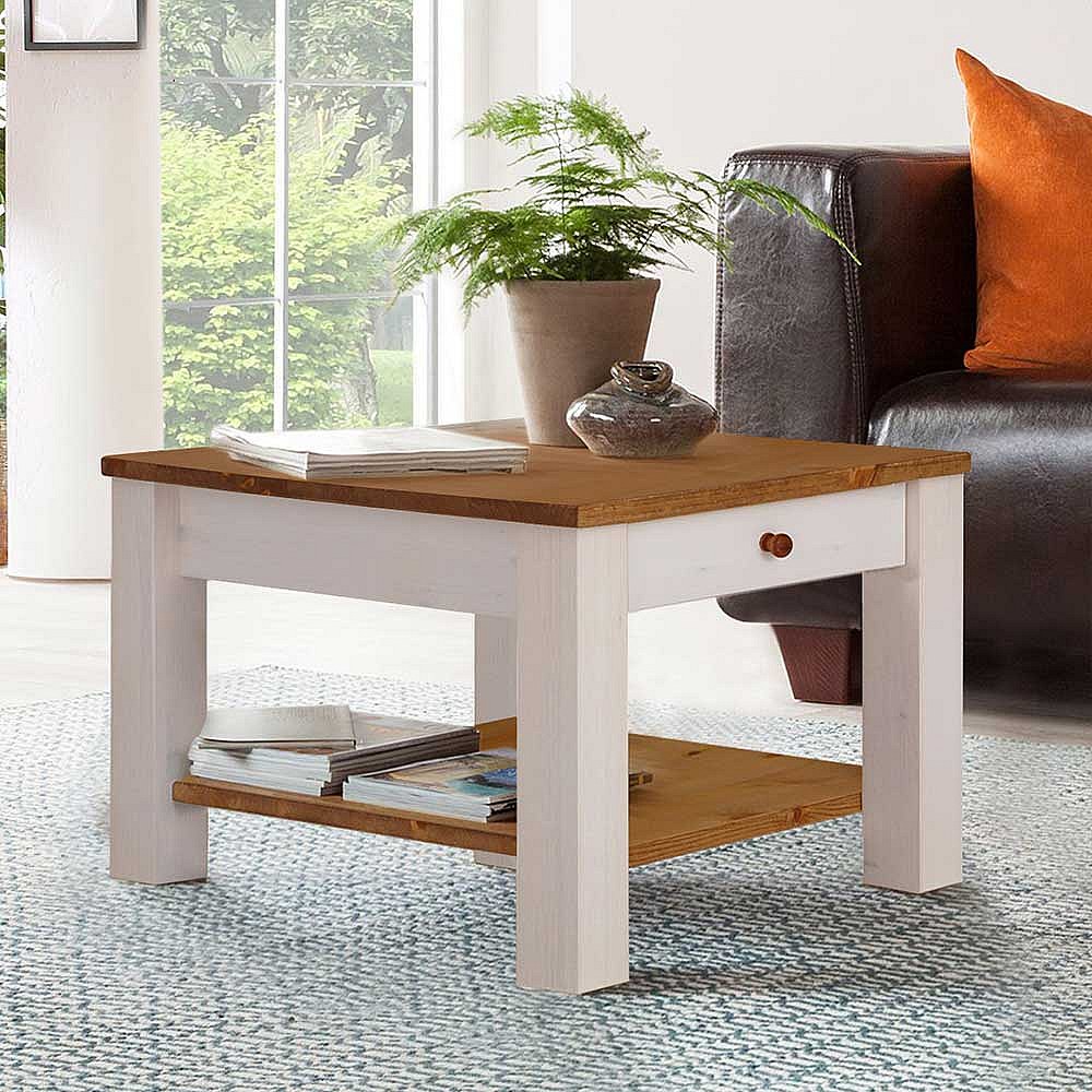 Wohnzimmertisch in Weiß und Honigfarben Kiefer Massivholz