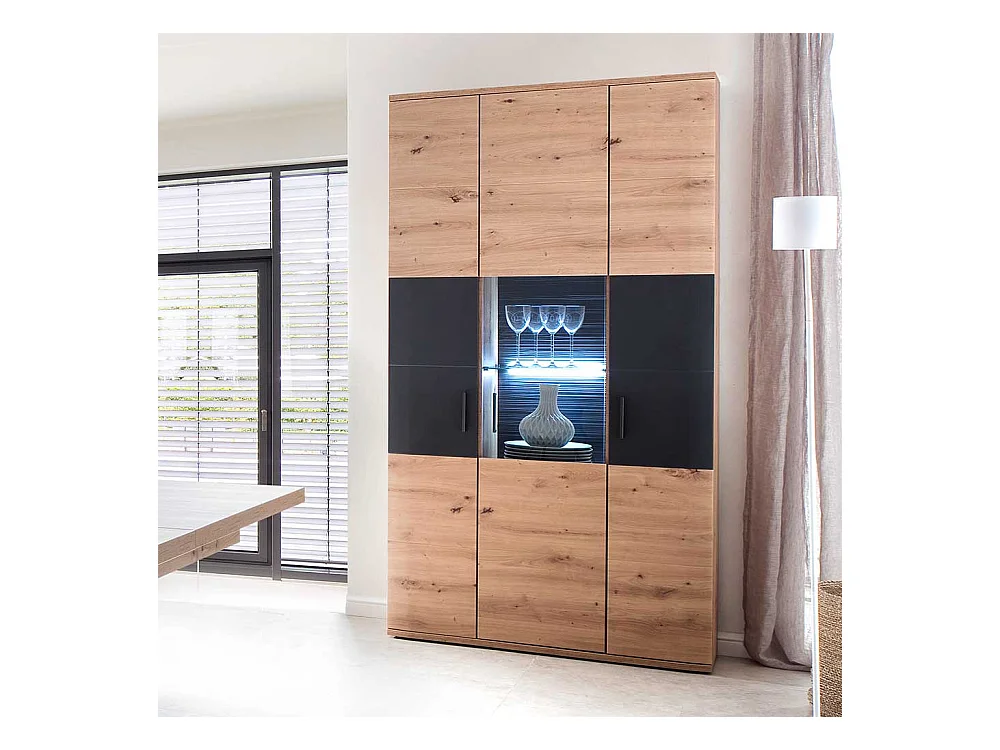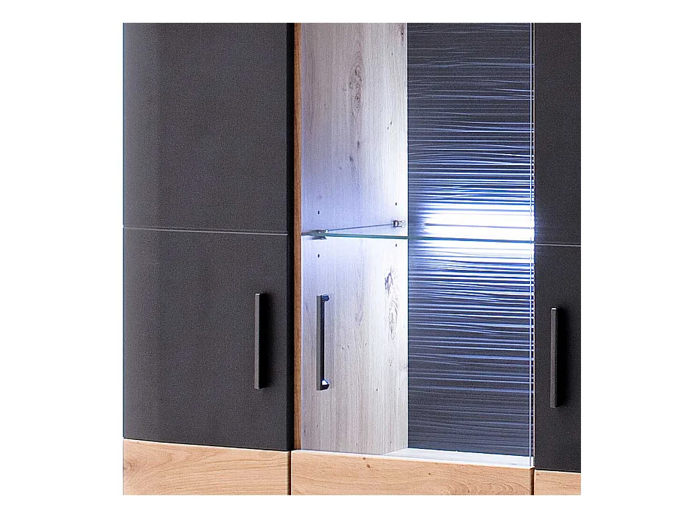 Wohnzimmervitrine in Eichefarben und Anthrazit 100 cm breit
