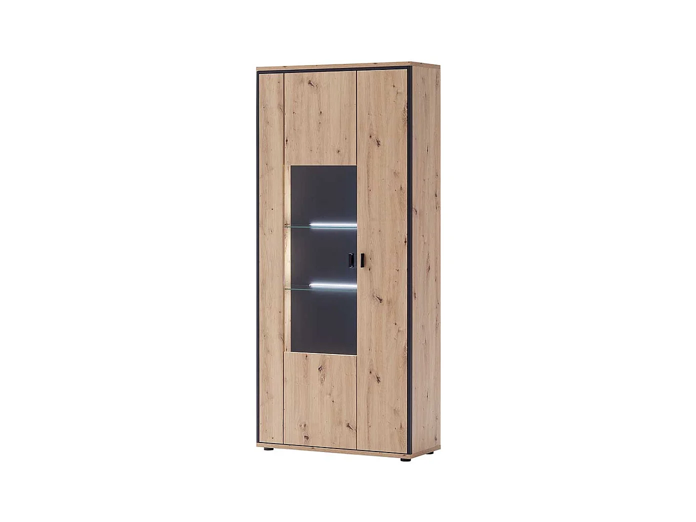 Wohnzimmervitrine in Eichefarben und Anthrazit 210 cm hoch