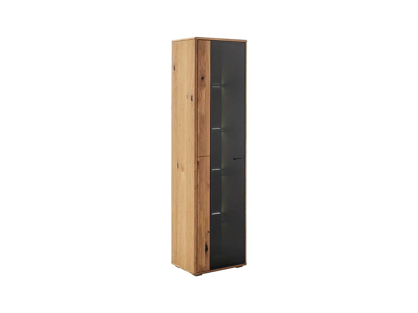 Wohnzimmervitrine schmal in Wildeichefarben und Anthrazit 190 cm hoch
