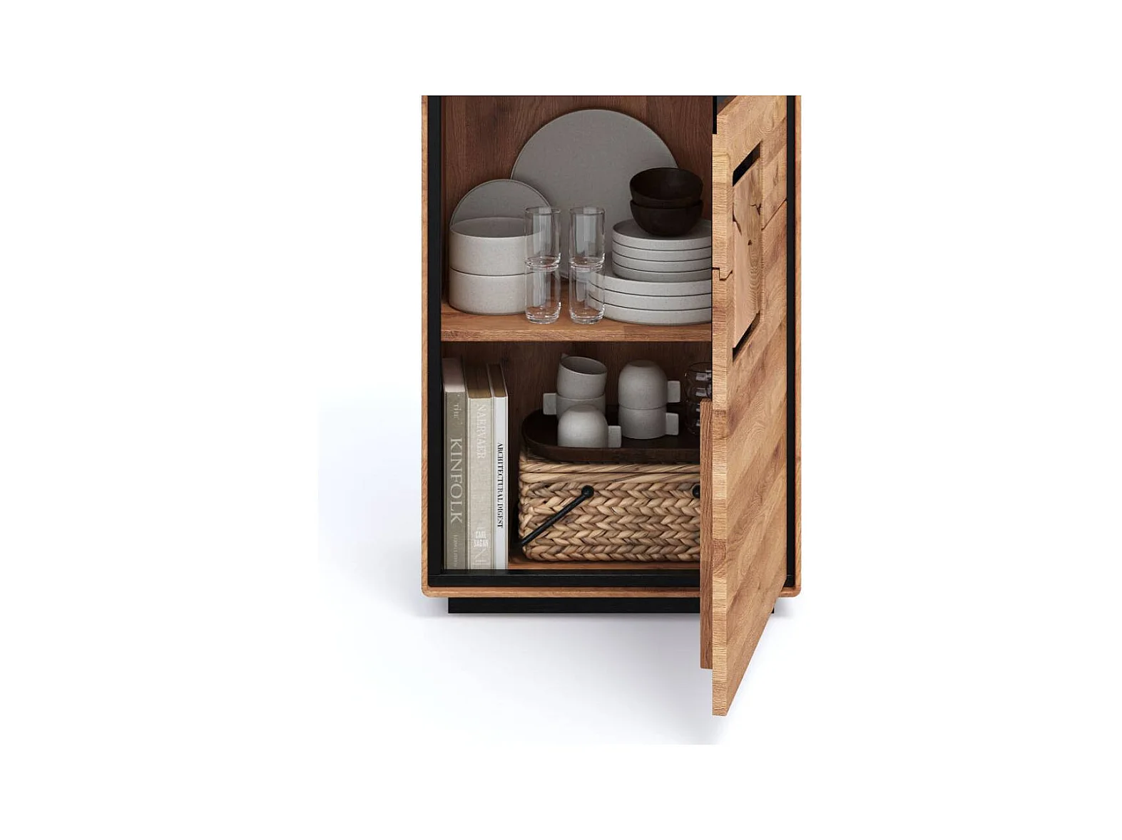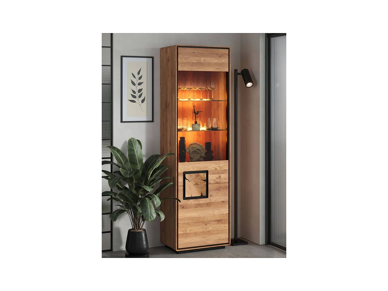 Wohnzimmervitrine Standvitrine aus Wildeiche Massivholz mit zwei Glasböden