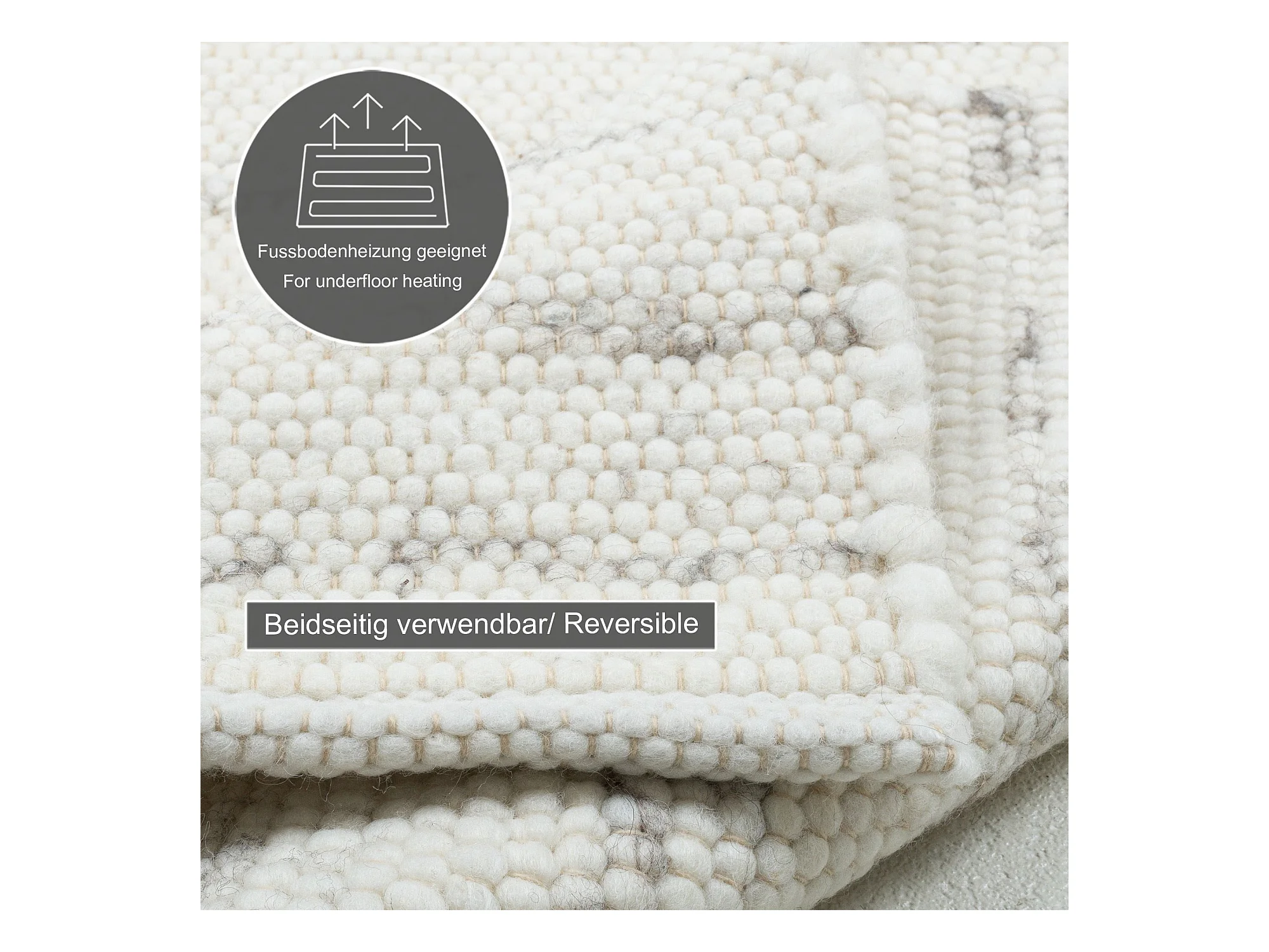Wollteppich handgewebt wendbar 190x290 cm Natur Grau Alm-Glück