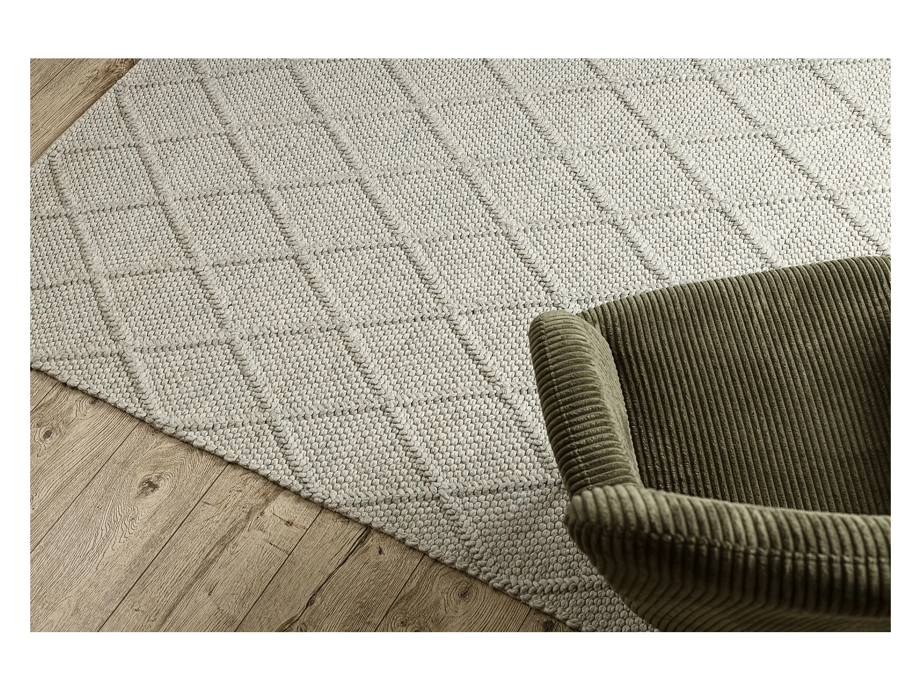 Wollteppich TAHAR 99001C beige - HANDGEWEBT Schlinge, Rauten, Boho 160x240 cm