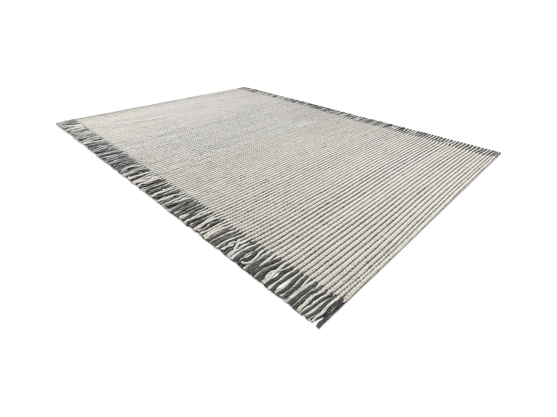 Wollteppich TAHAR 99003F Creme / grau - HANDGEWEBT Linien, Fransen 120x180 cm