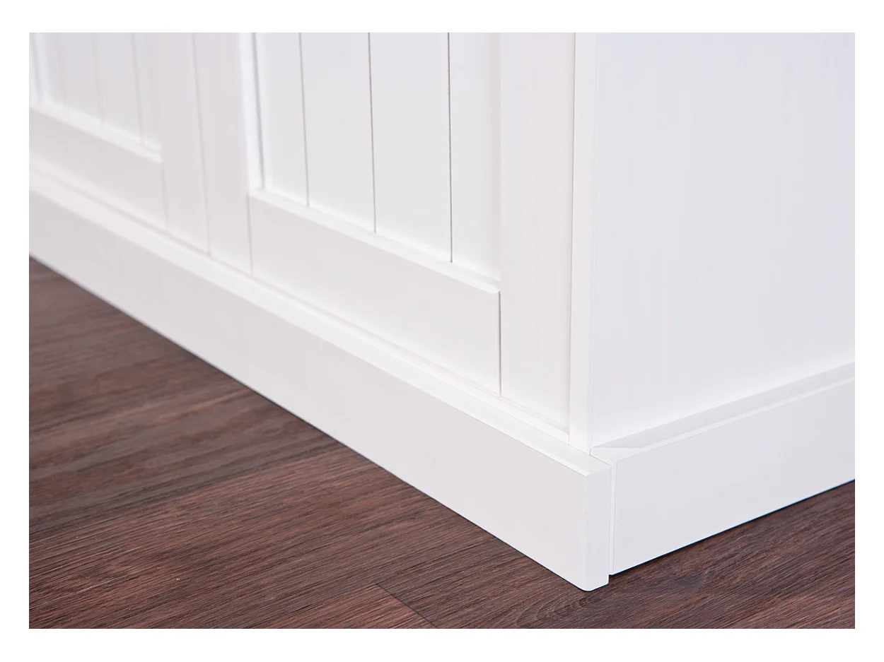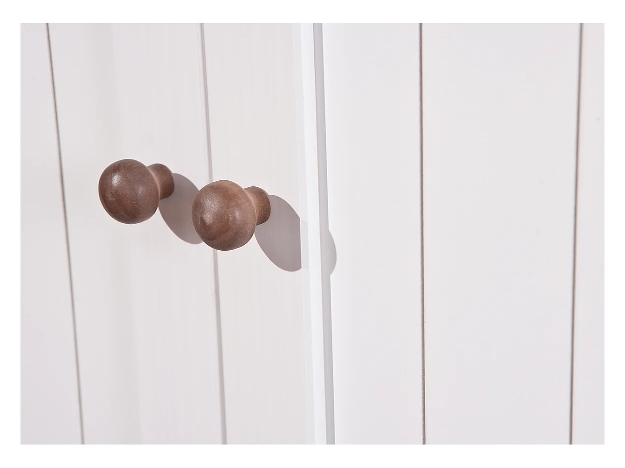 Wright Sideboard 3 Türen, 2 Glastüren, 3 Schubladen, 3 offene Fächer, weiss, braun.