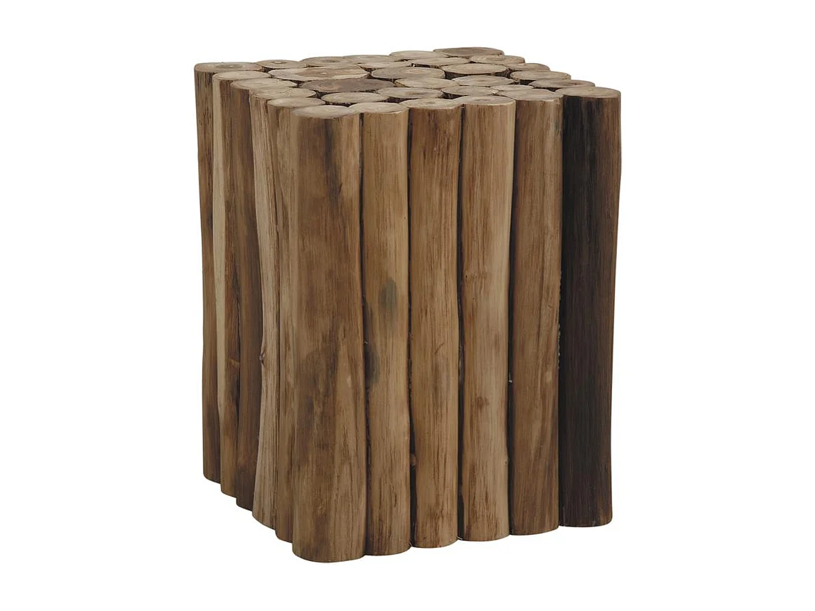 Würfeliger Hocker aus Teakrundholz