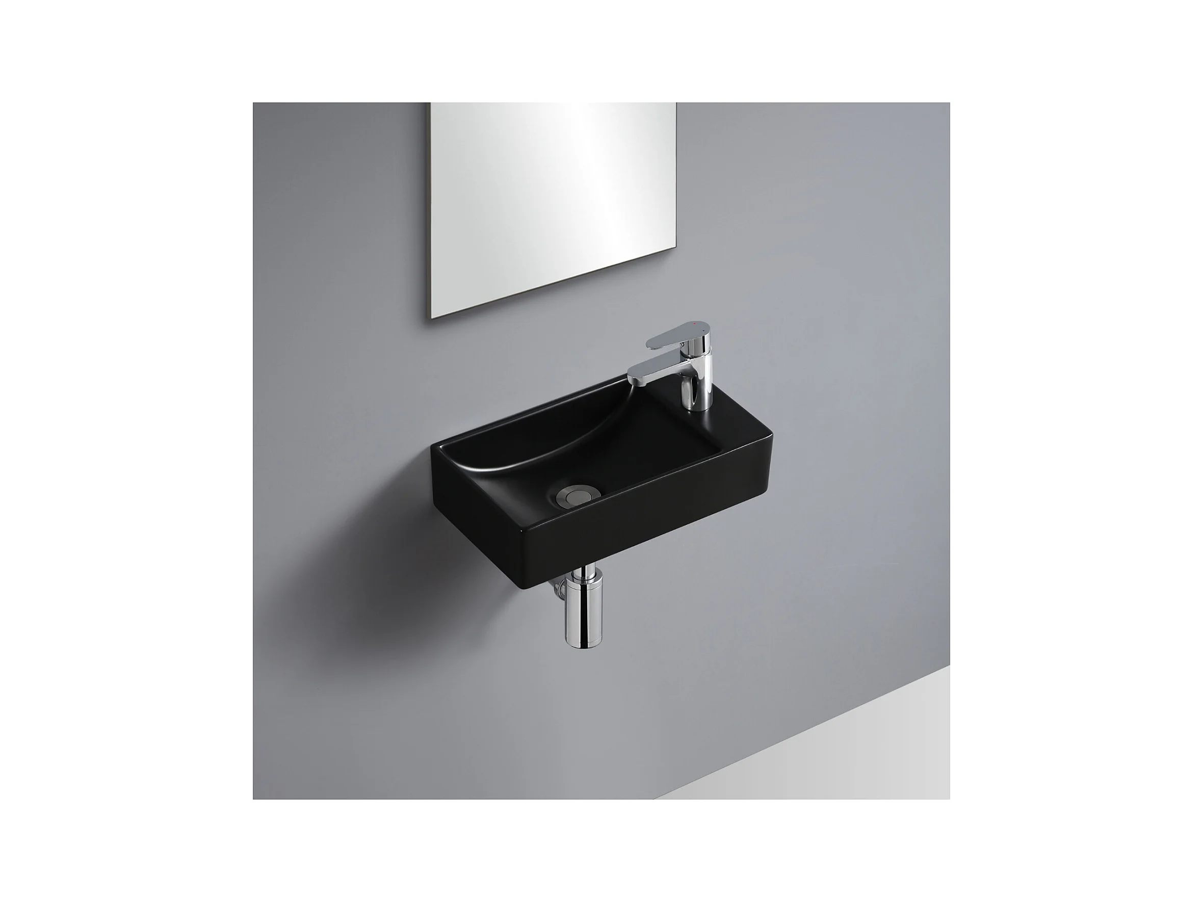 XAVY Wandwaschbecken L.40 x H.10 x T.23 cm rechteckig schwarze Keramik