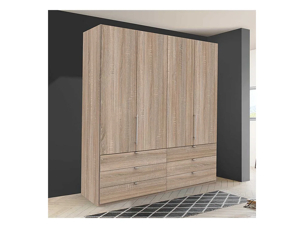 XL Falttüren Kleiderschrank mit sechs Schubladen Eiche Sägerau