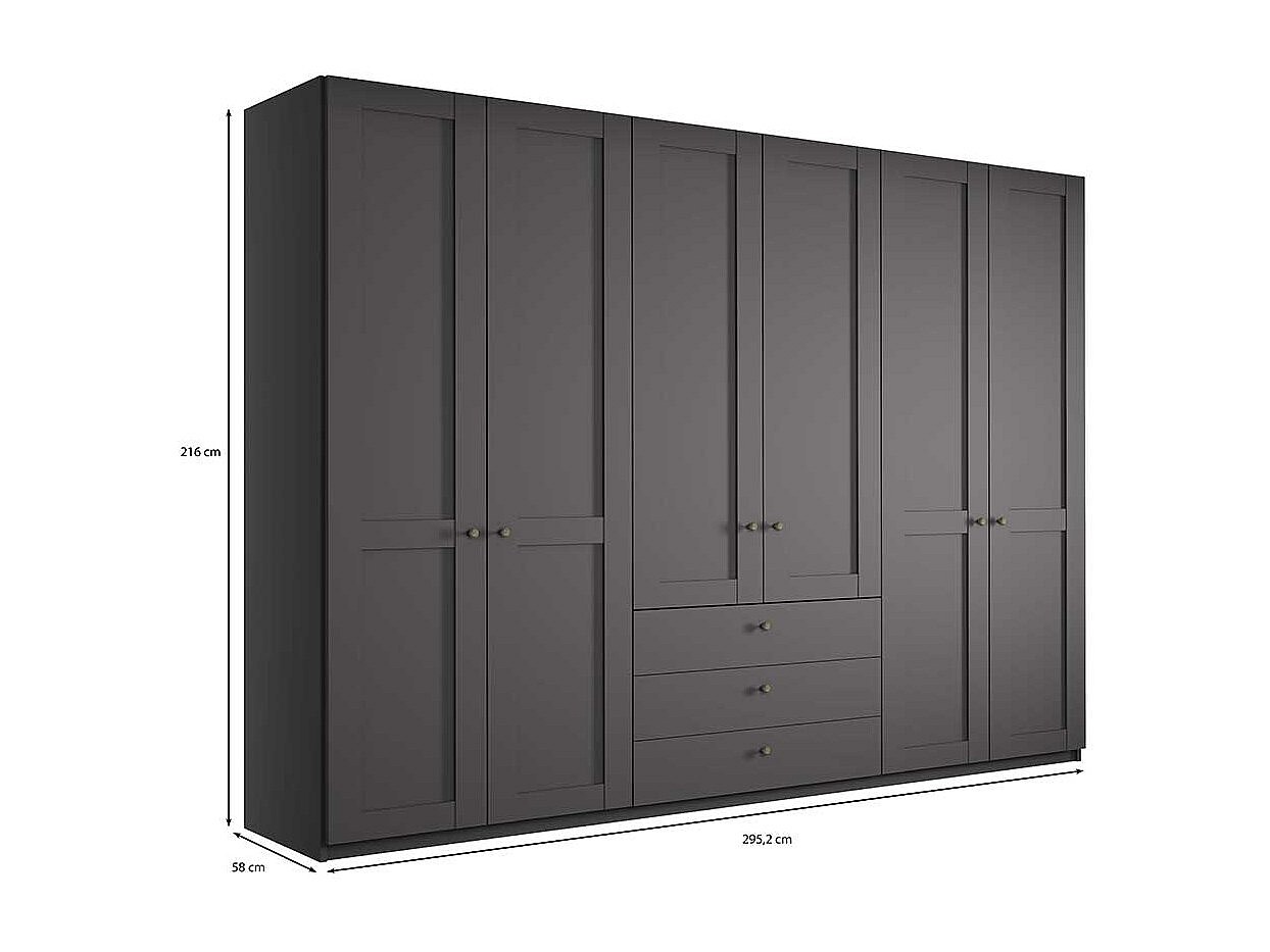 XL Kleiderschrank 6 Türen in Dunkelgrau Landhaus 300 cm breit