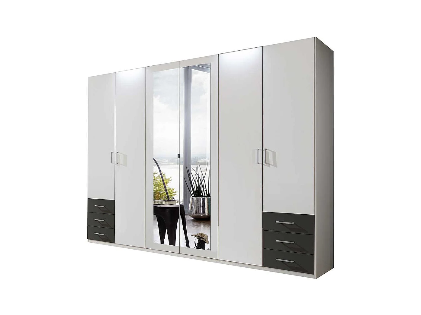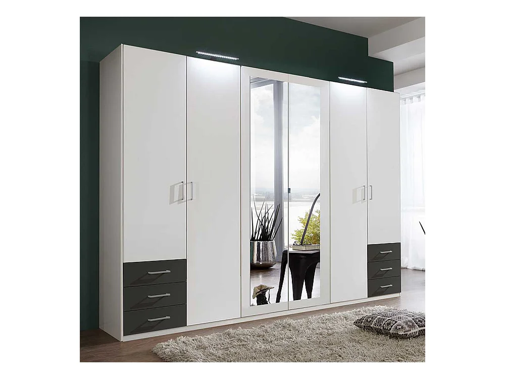 XL Schlafzimmerkleiderschrank in Weiß und Dunkelgrau Spiegeltüren