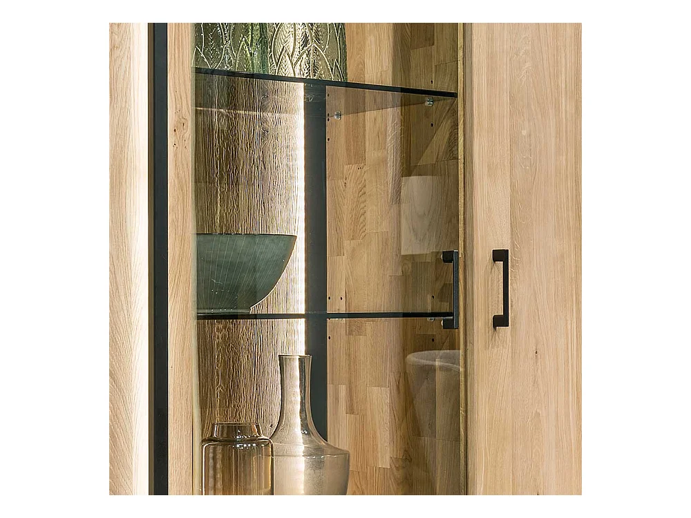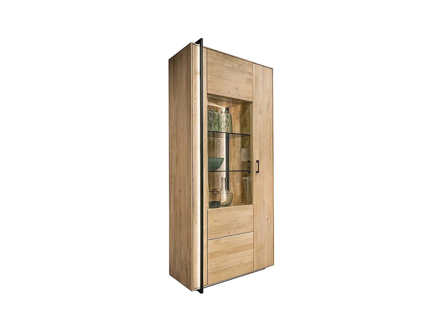 XL Schrank Vitrine in Asteichefarben Massivholz und Glas
