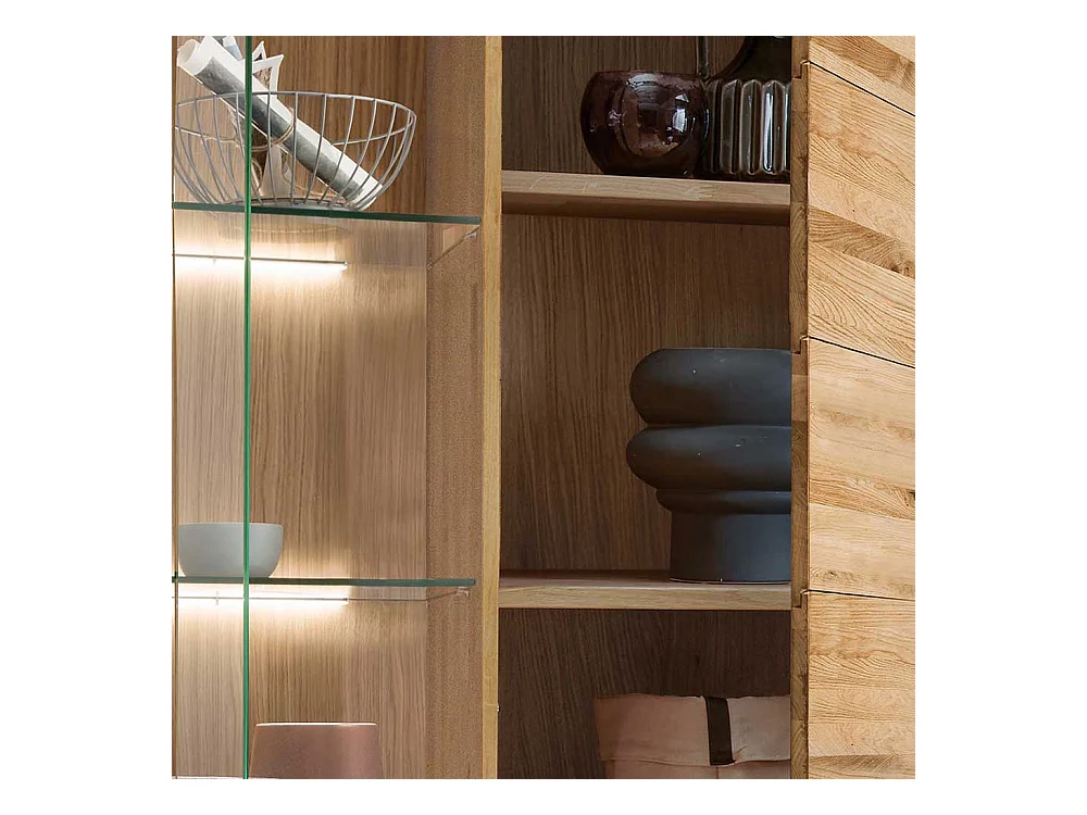 XL Wohnzimmervitrine aus Wildeiche Massivholz Glastür links