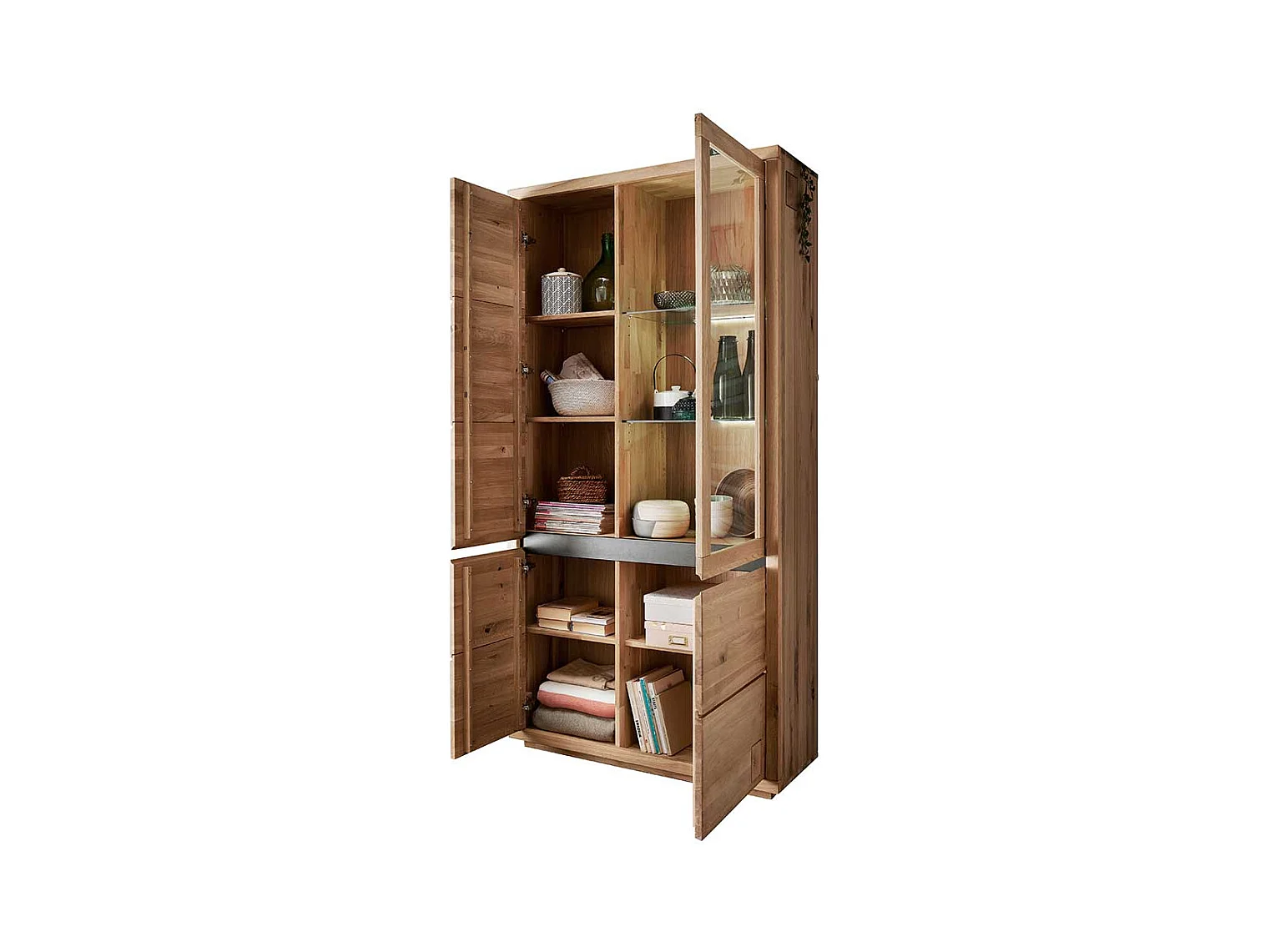 XL Wohnzimmervitrine aus Wildeiche Massivholz Hirnholzeinlagen