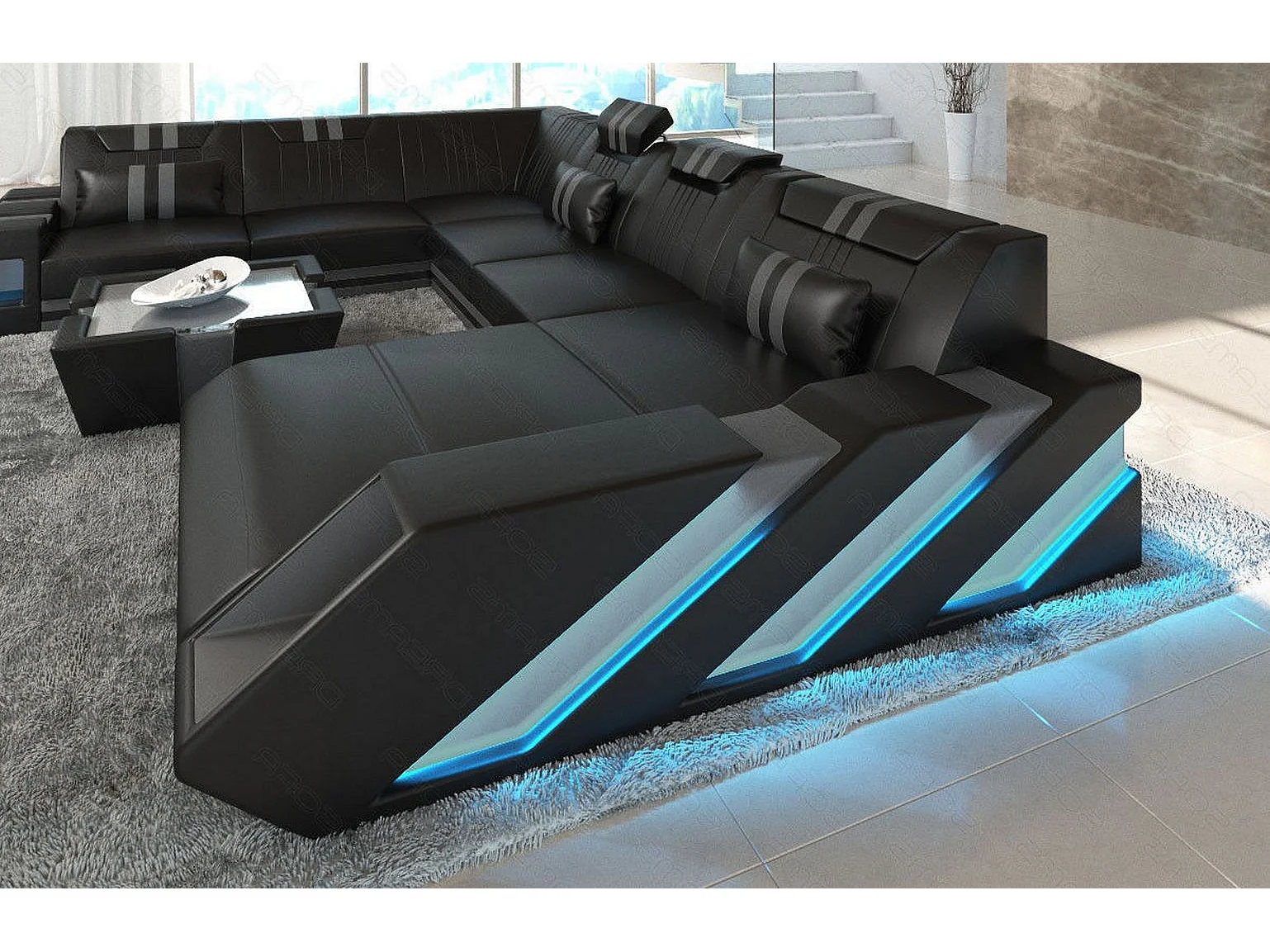 XXL Leder Wohnlandschaft Apollonia EL Schwarz Grau Rechts