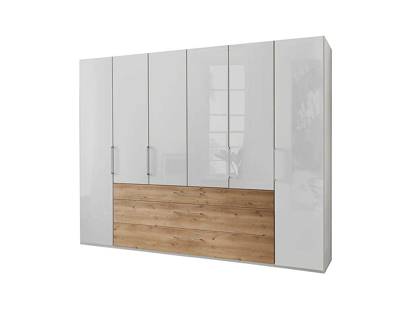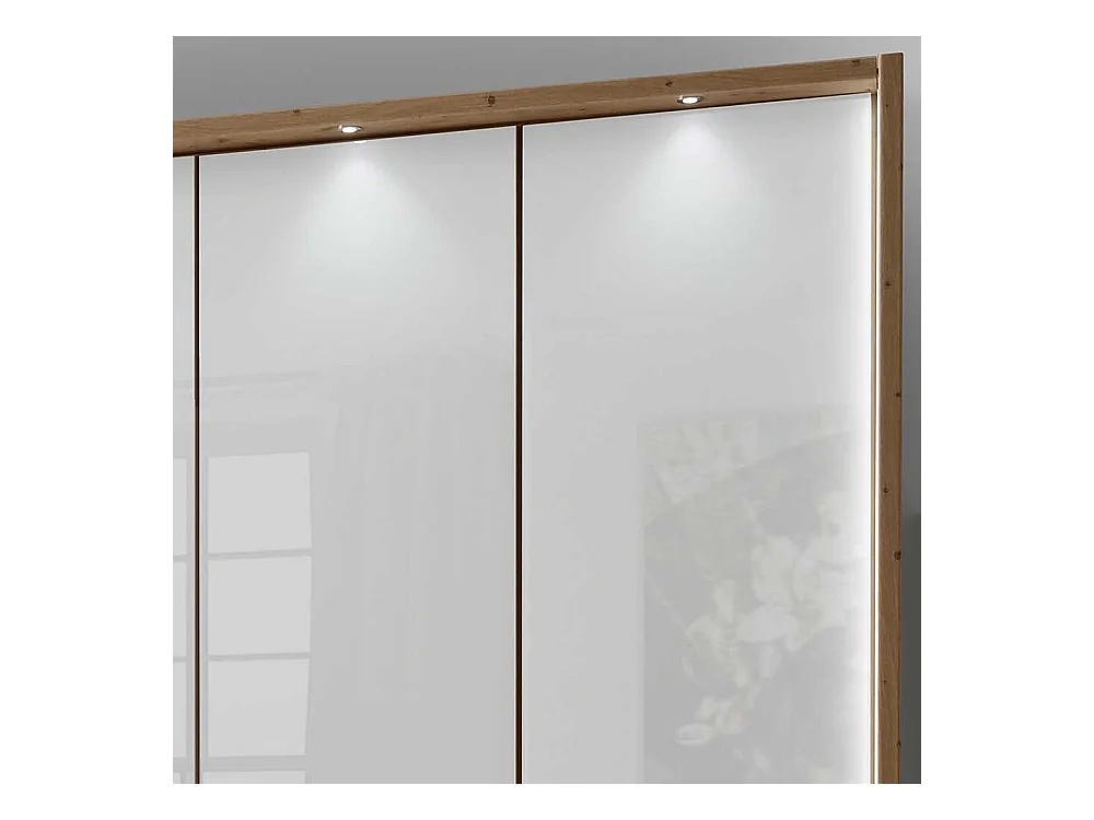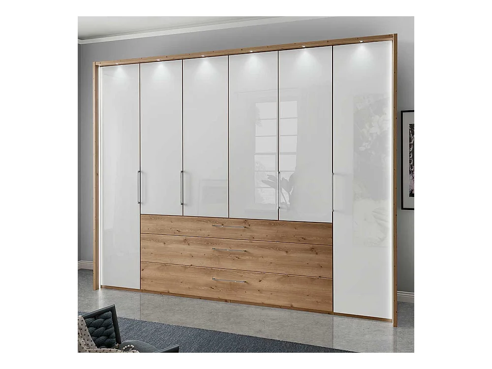 XXL Schlafzimmerschrank in Eiche Bianco Weiß Glasfront