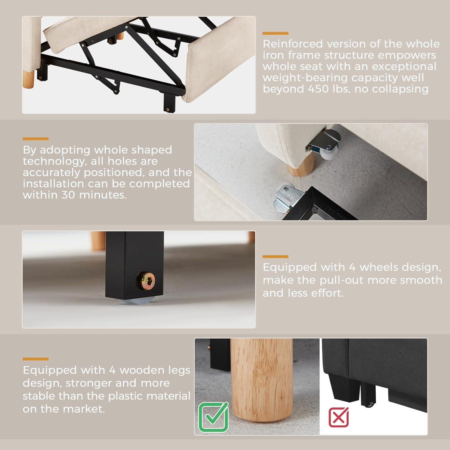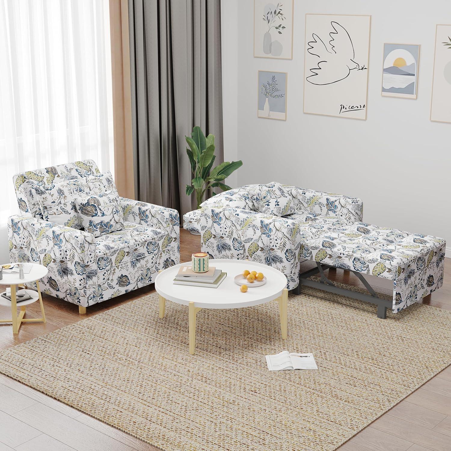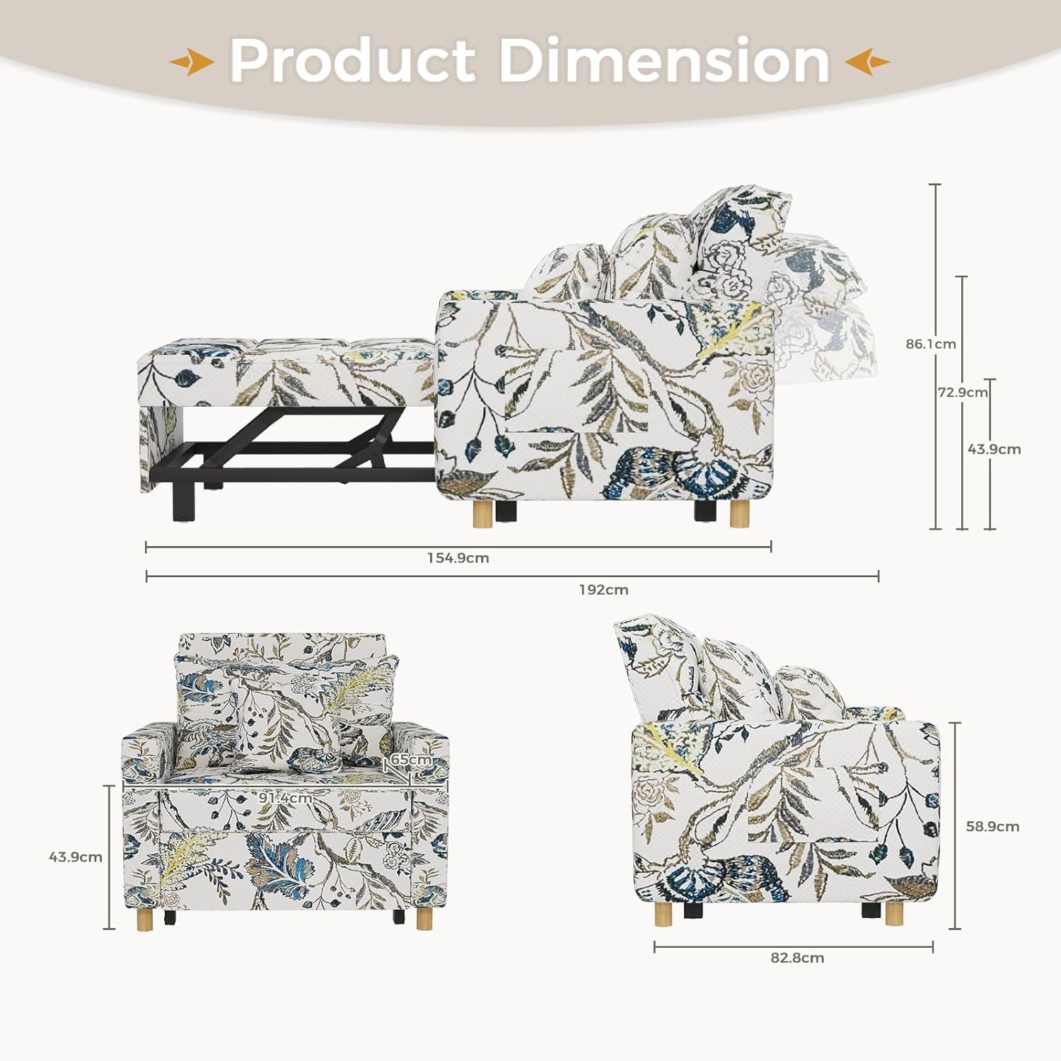 YODOLLA 192cm schlafsessel, 3-in-1 Schlaferstuhl ausziehbar mit Bettfunktion, Seitentasche & verstellbarer Rückenlehne für Gästezimmer, Blume