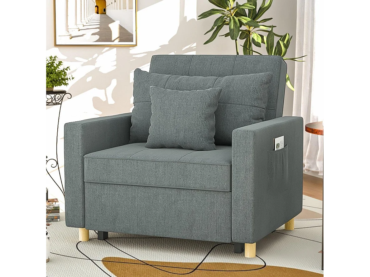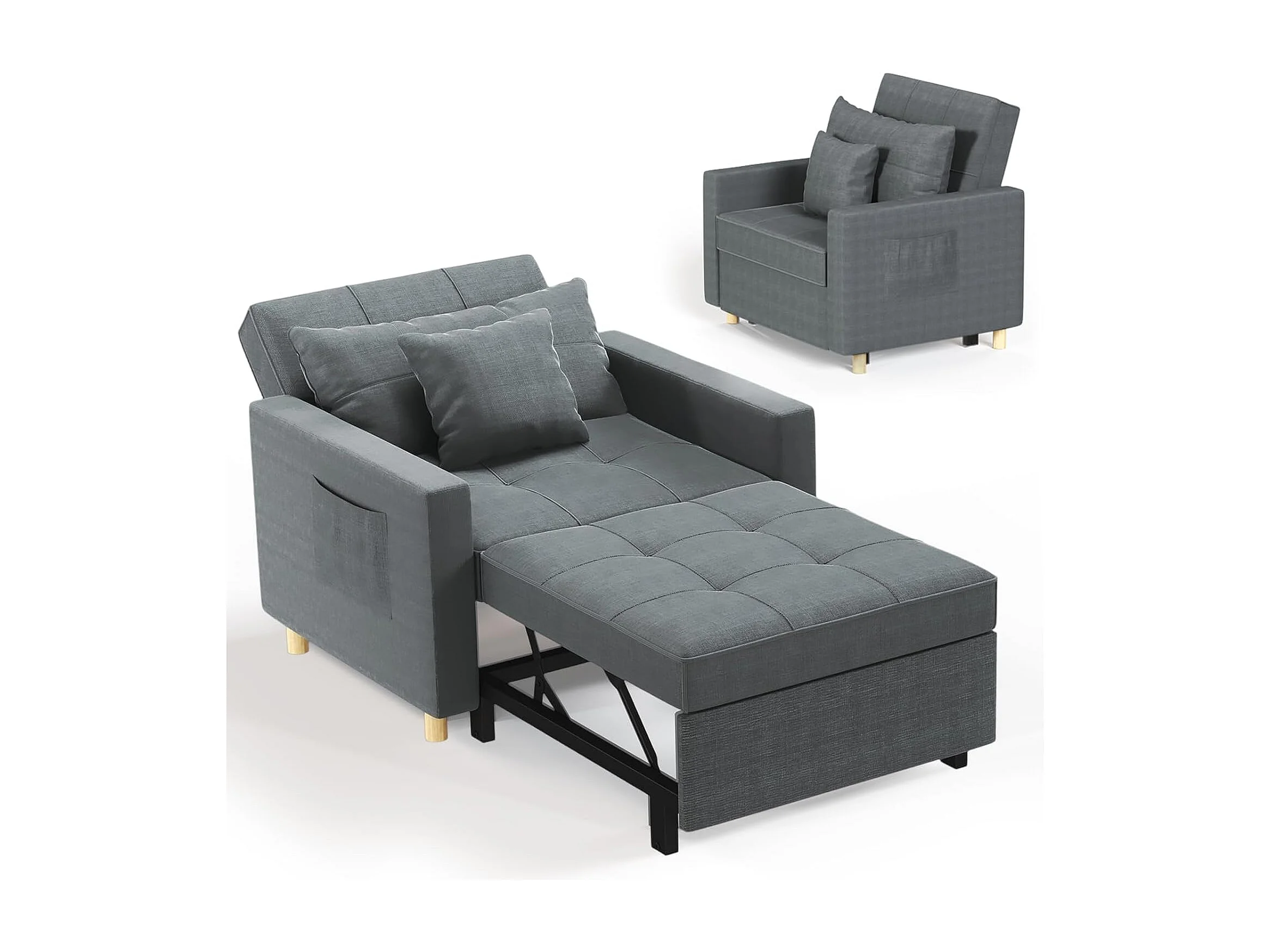YODOLLA 192cm schlafsessel, 3-in-1 Schlaferstuhl ausziehbar mit Bettfunktion, Seitentasche & verstellbarer Rückenlehne für Gästezimmer, Dunkelgrau