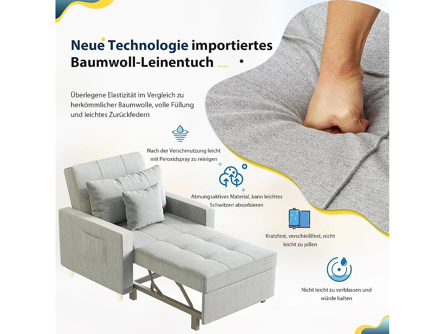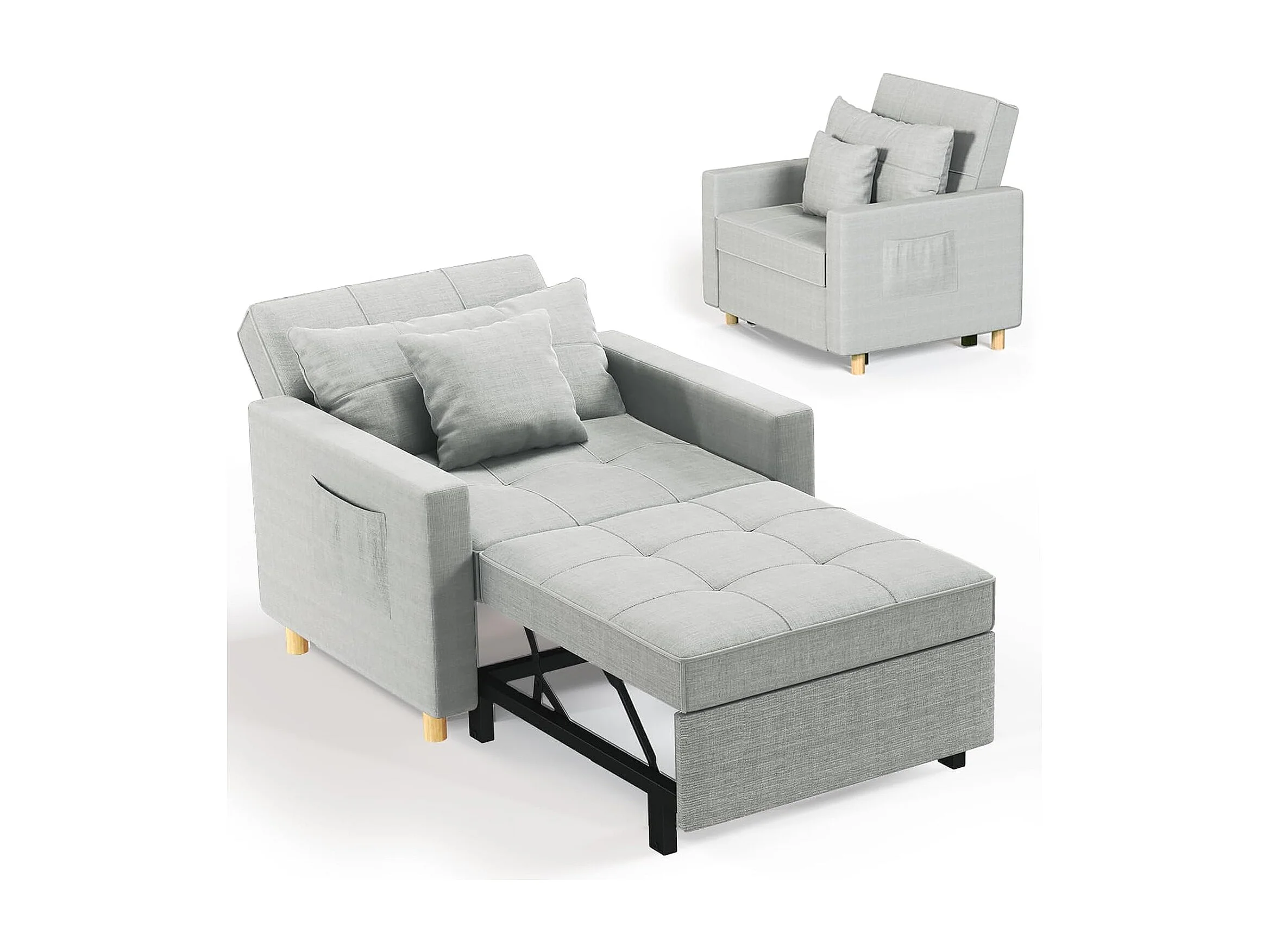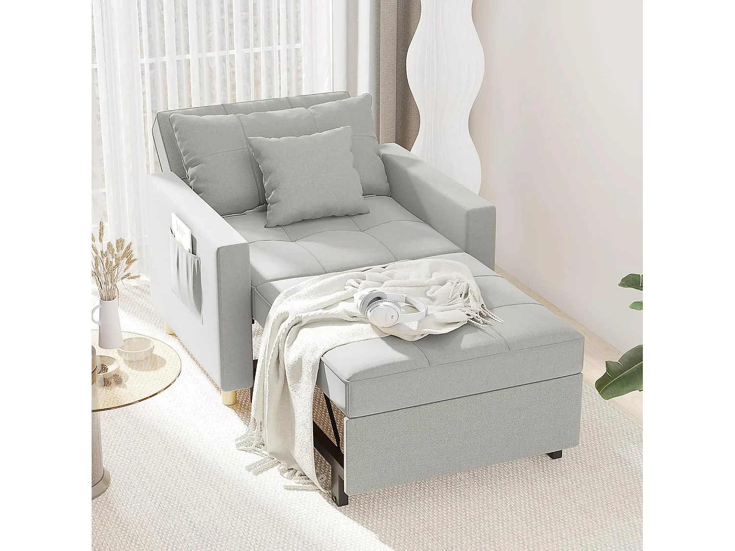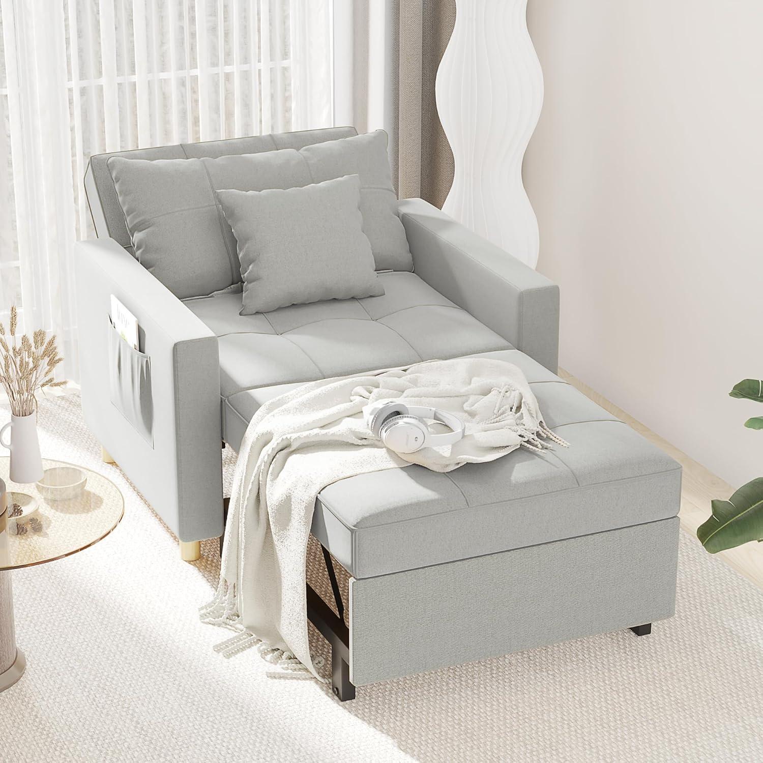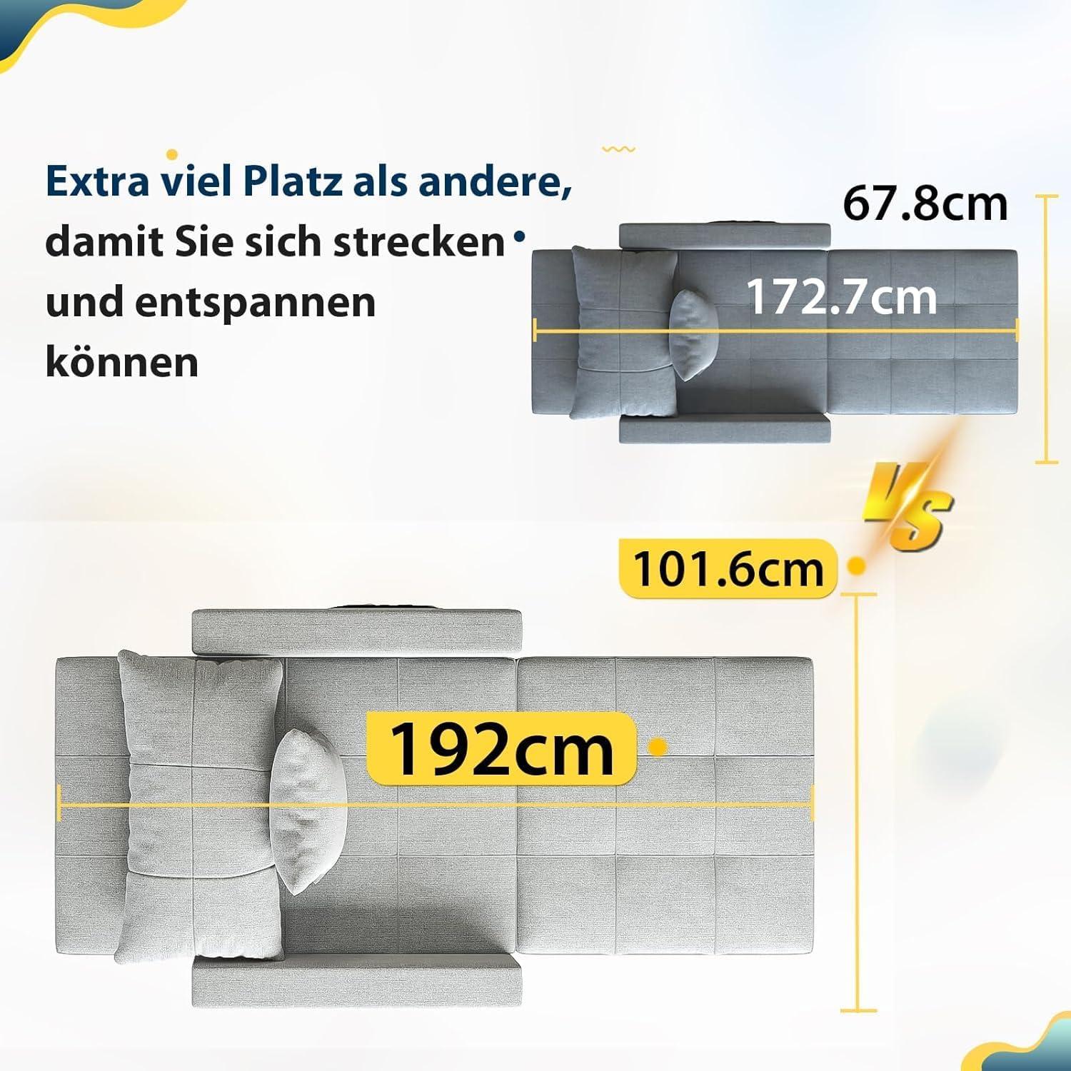 YODOLLA 192cm schlafsessel, 3-in-1 Schlaferstuhl ausziehbar mit Bettfunktion, Seitentasche & verstellbarer Rückenlehne für Gästezimmer, Hellgrau