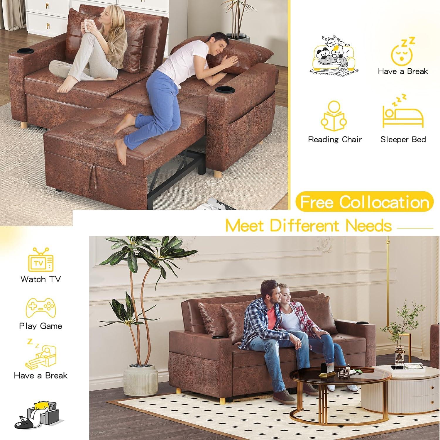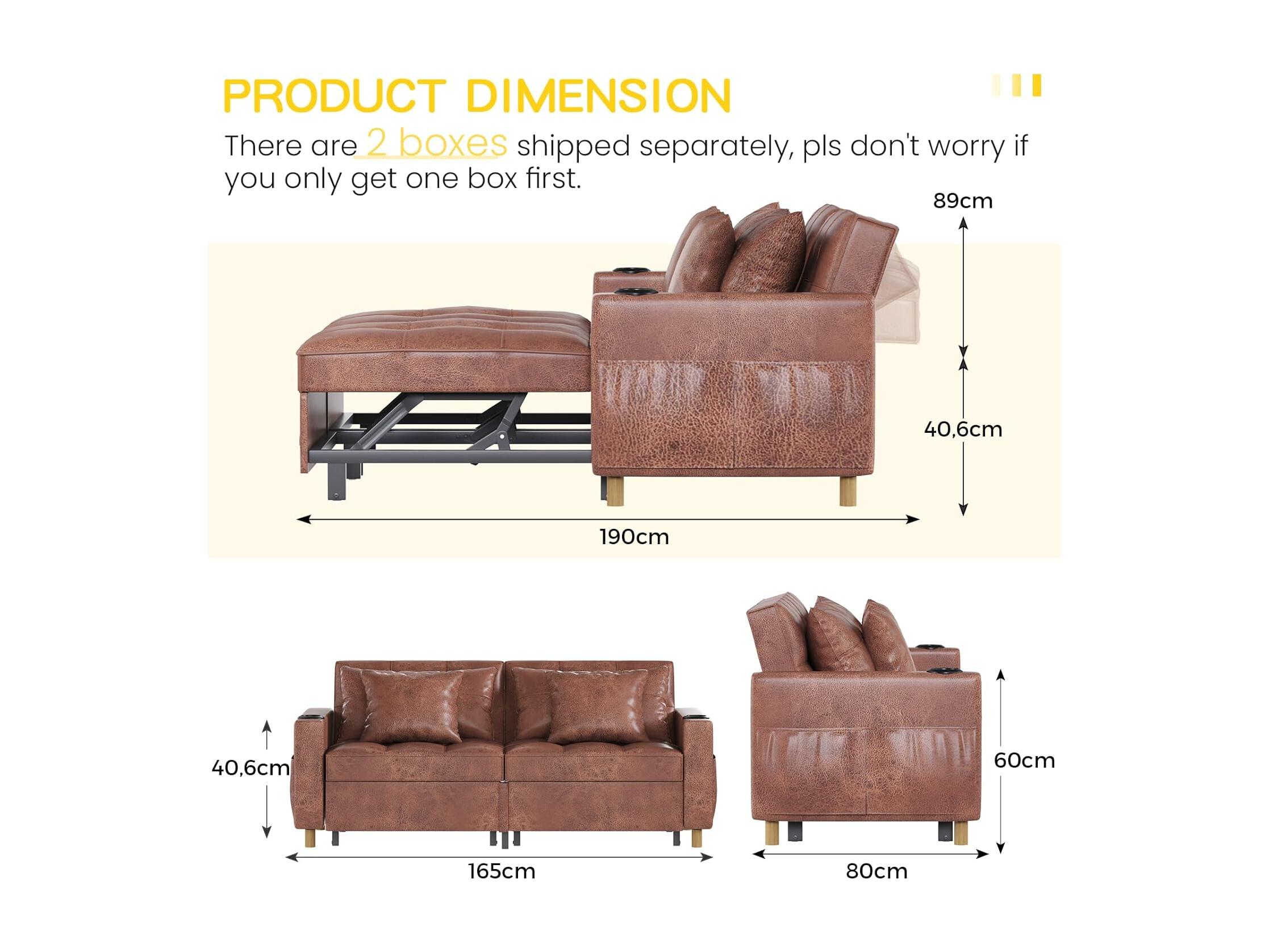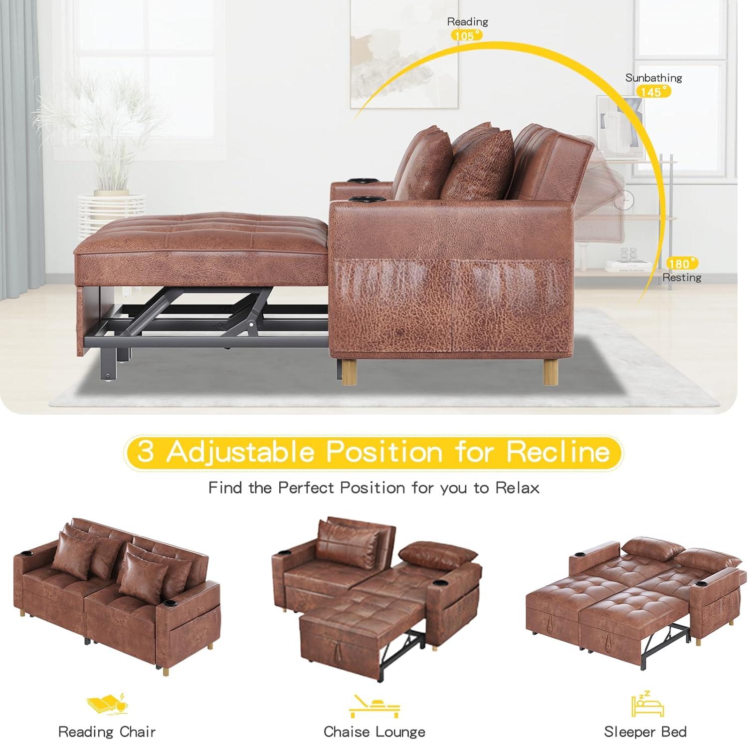YODOLLA 2-Sitzer Schlafsessel,196x175x92 cm, Mit verstellbarer Rückenlehne, Ausziehbares Doppelbett für Erwachsene, Braun