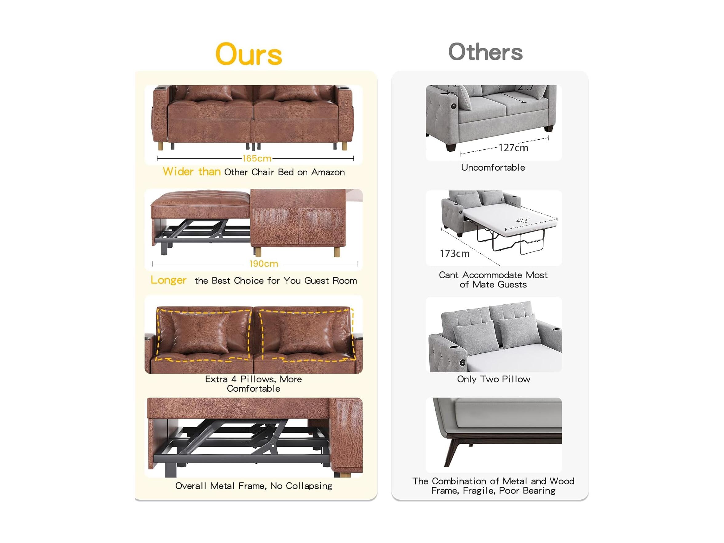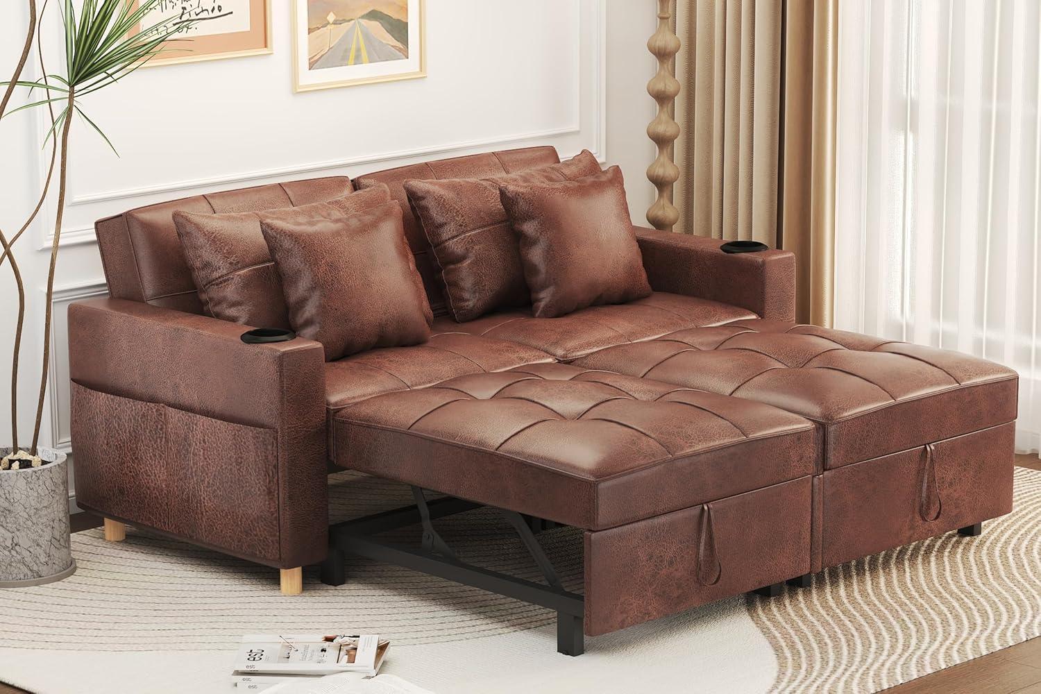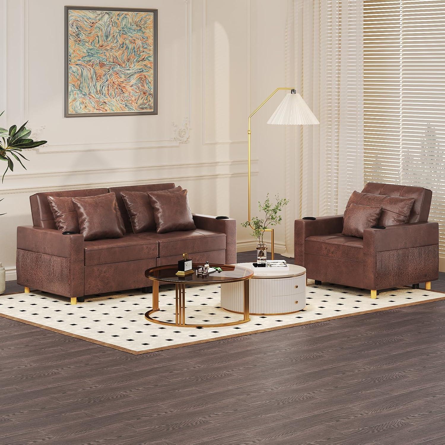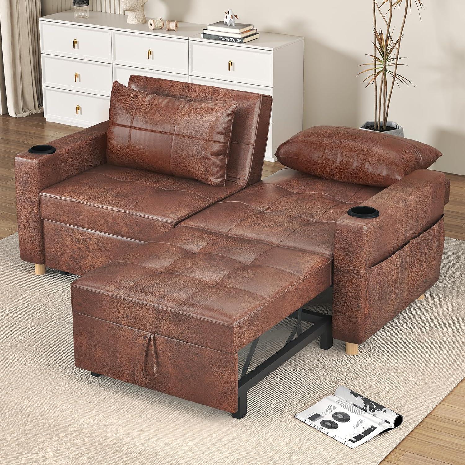 YODOLLA 2-Sitzer Schlafsessel,196x175x92 cm, Mit verstellbarer Rückenlehne, Ausziehbares Doppelbett für Erwachsene, Braun