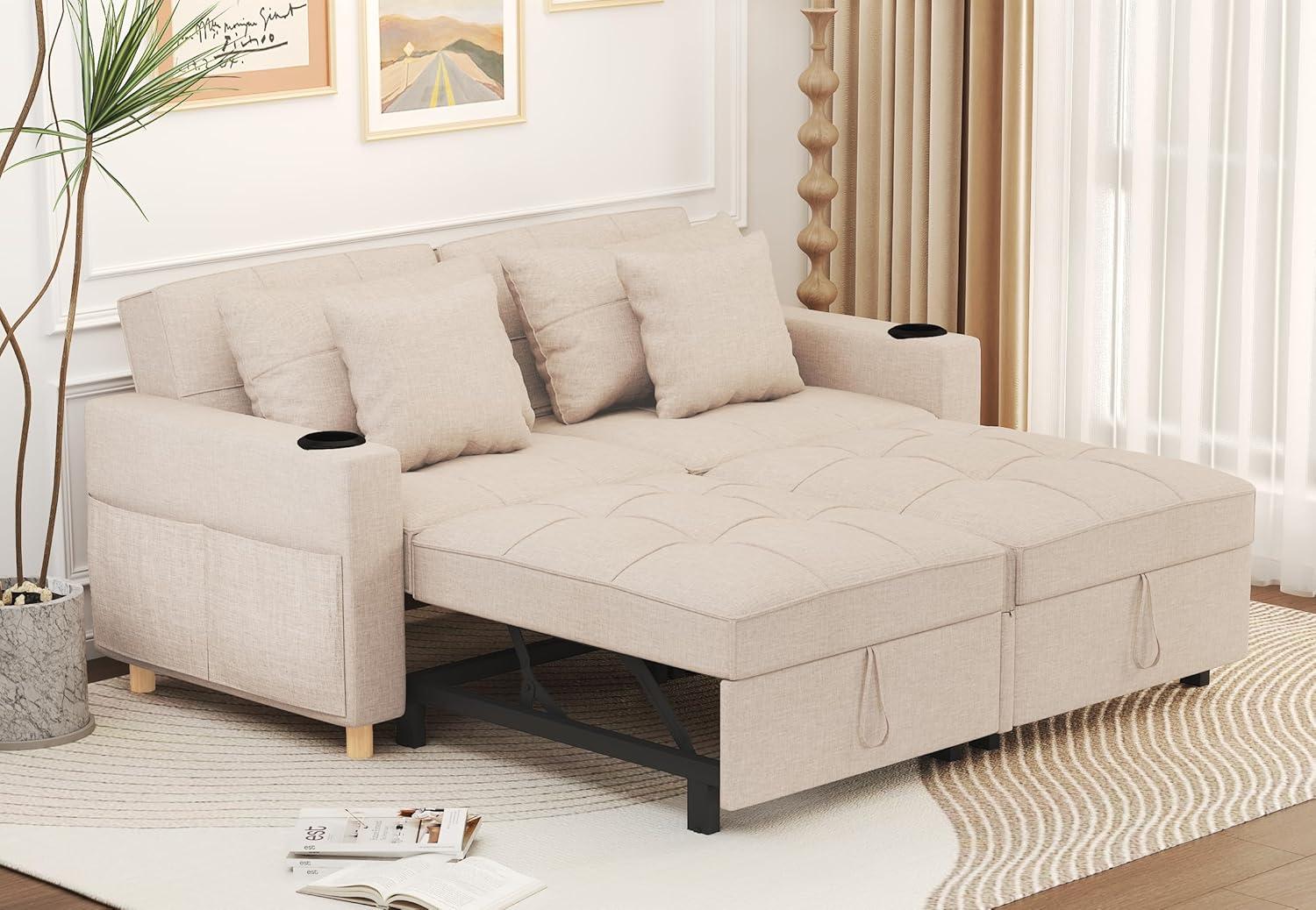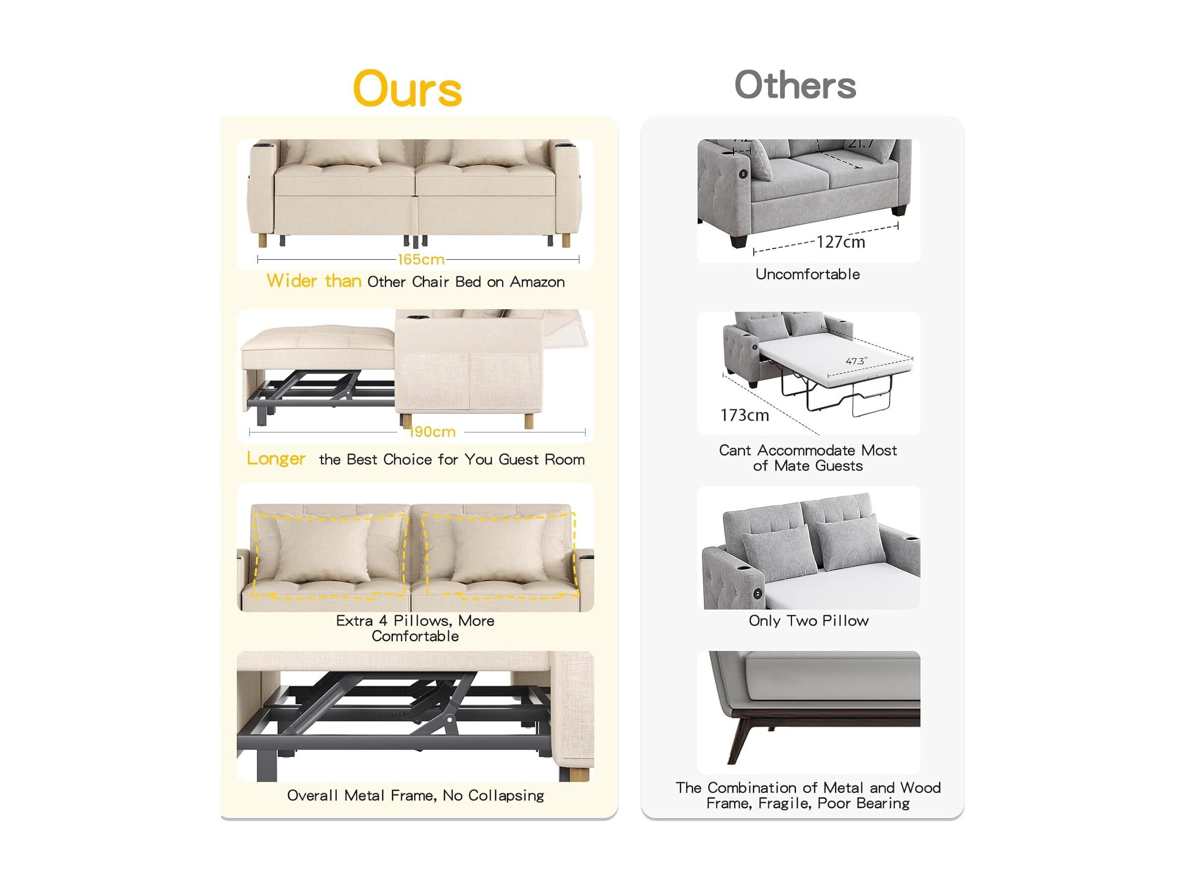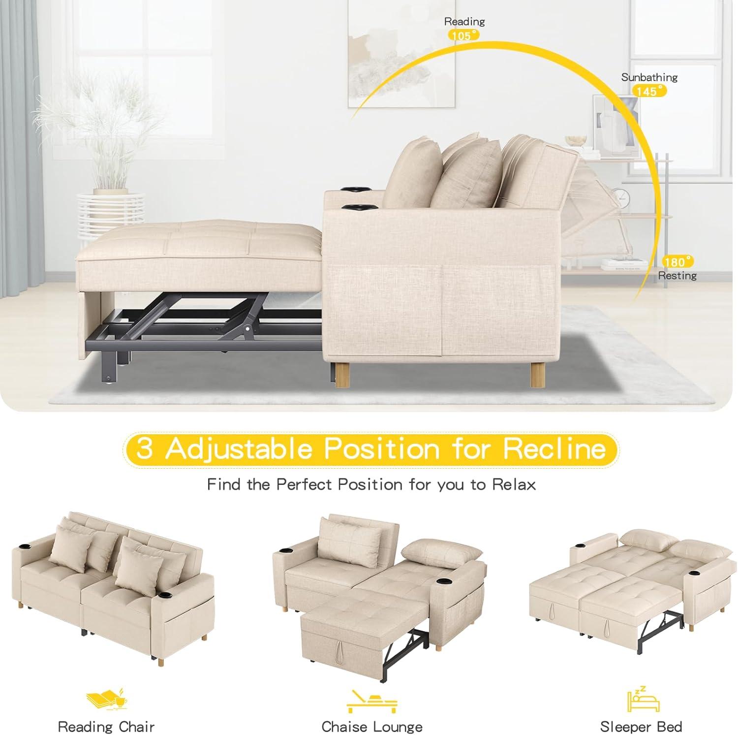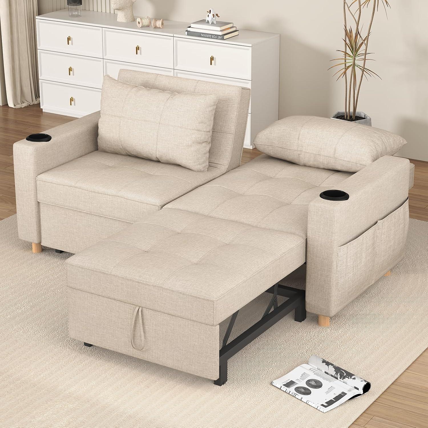 YODOLLA 2-Sitzer Schlafsessel,196x175x92 cm, mit verstellbarer Rückenlehne, ausziehbares Schlafsofa für Erwachsene, Beige