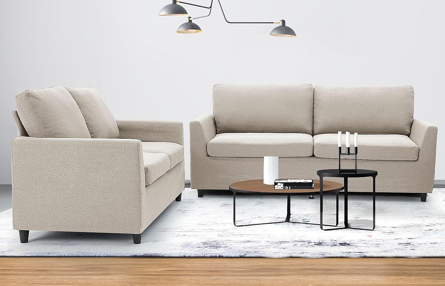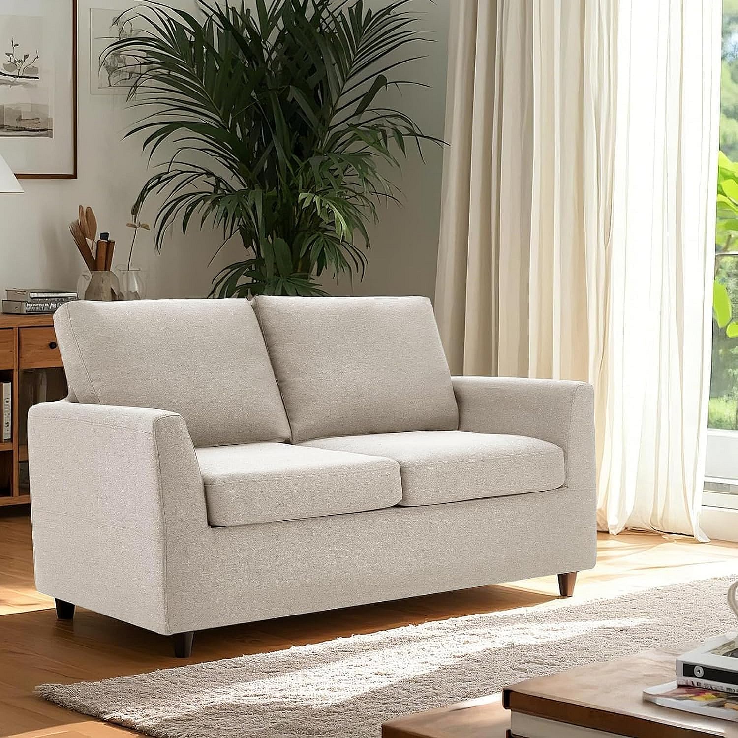 YODOLLA 2-Sitzer Sofa aus Leinen, mit abnehmbaren Bezügen. Modern und bequem für Wohnung oder Büro, Beige