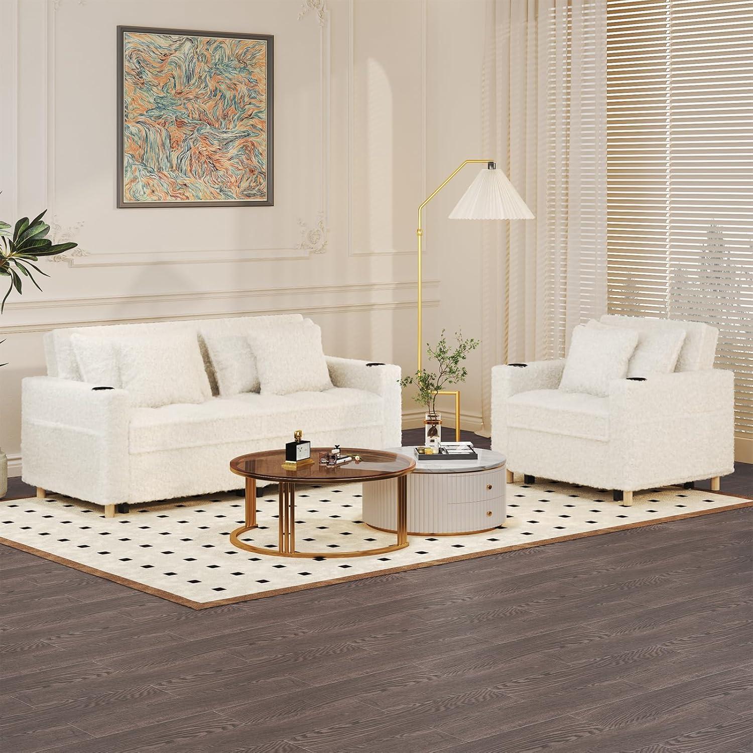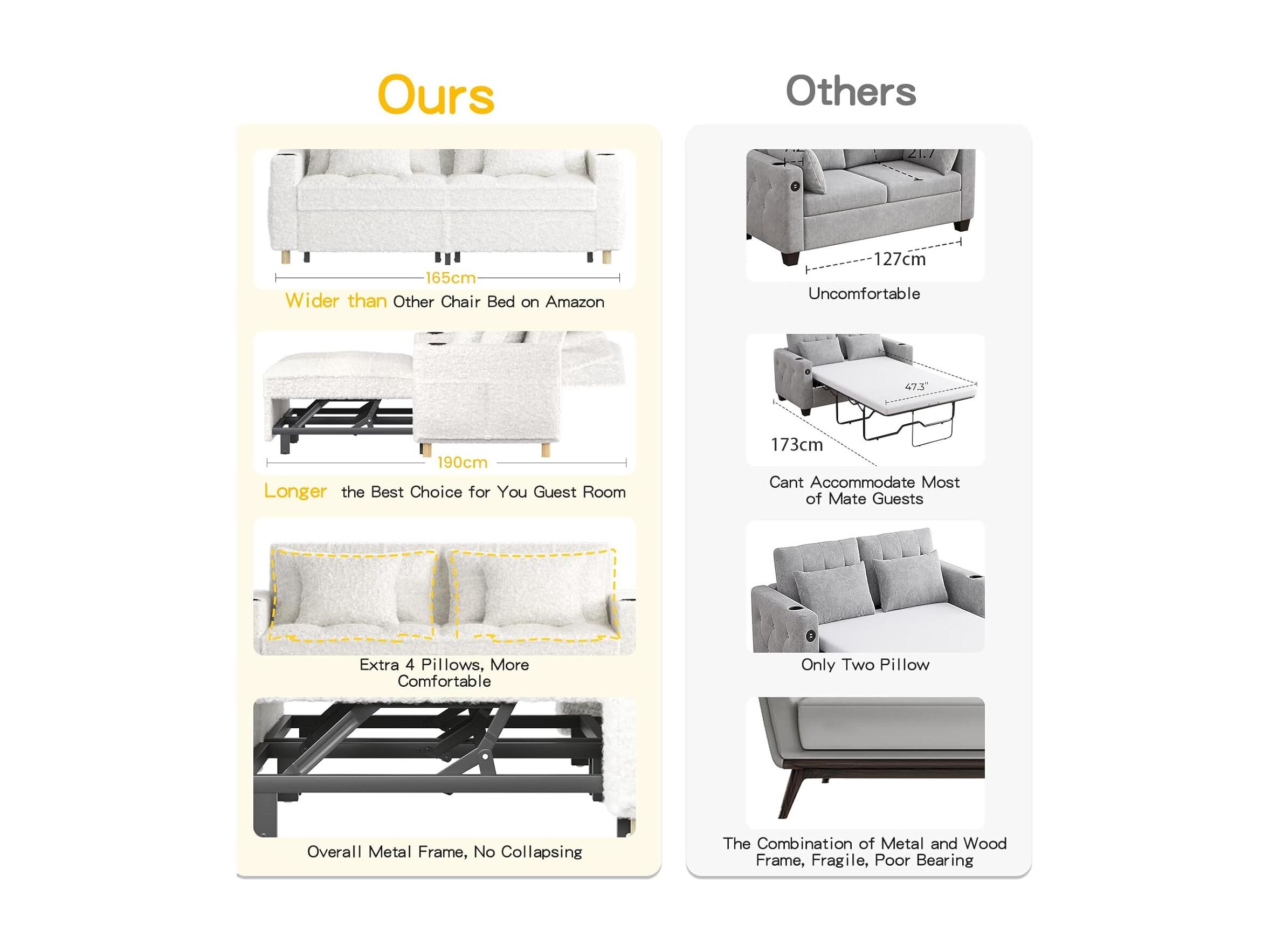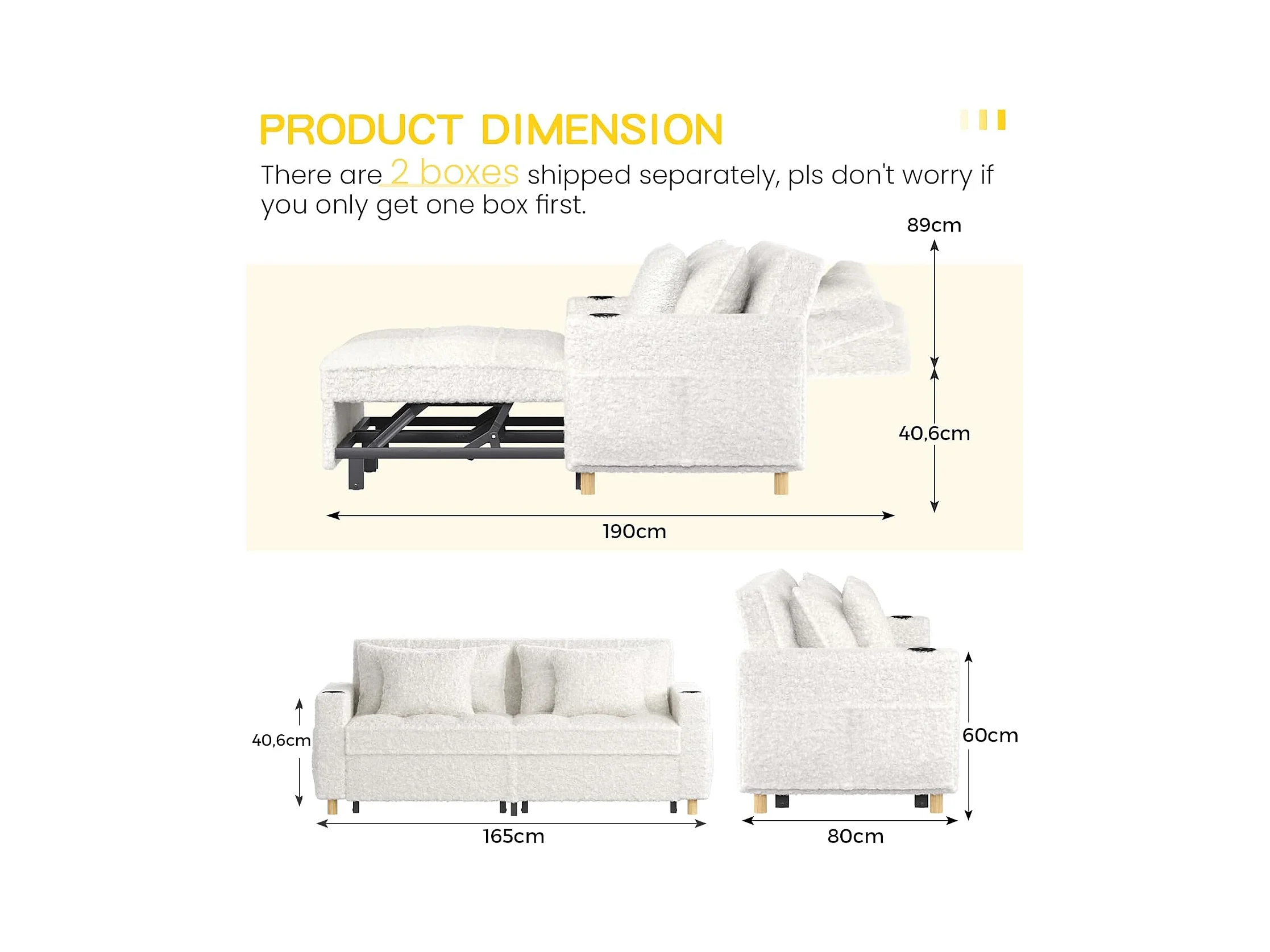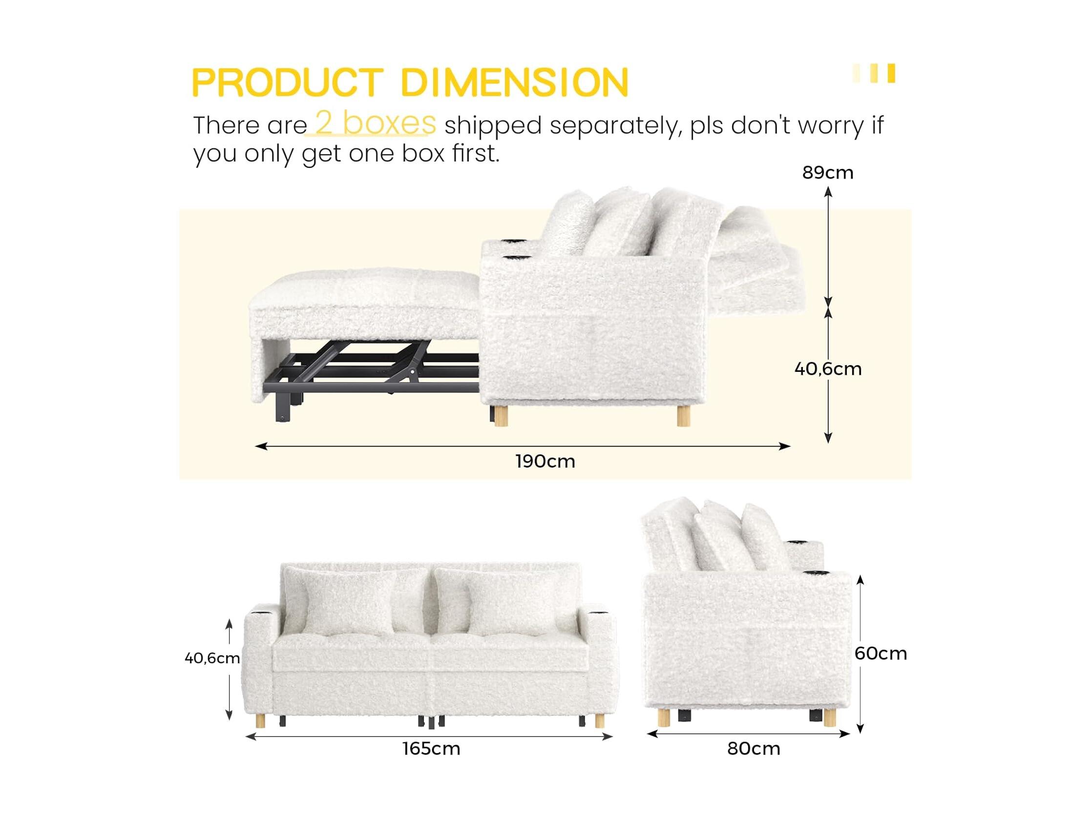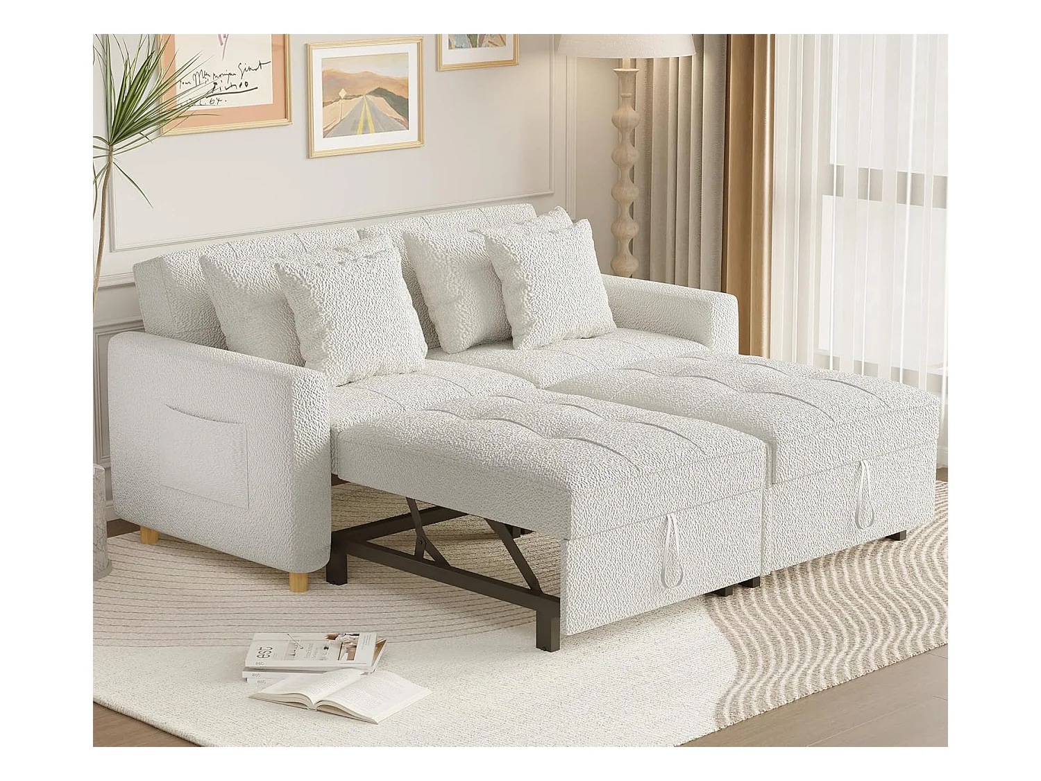 YODOLLA 3-in-1 Schlafsessel mit verstellbarer Rückenlehne, ausziehbares Doppelbett mit Bettfunktion für Erwachsene, Teddy Weiß