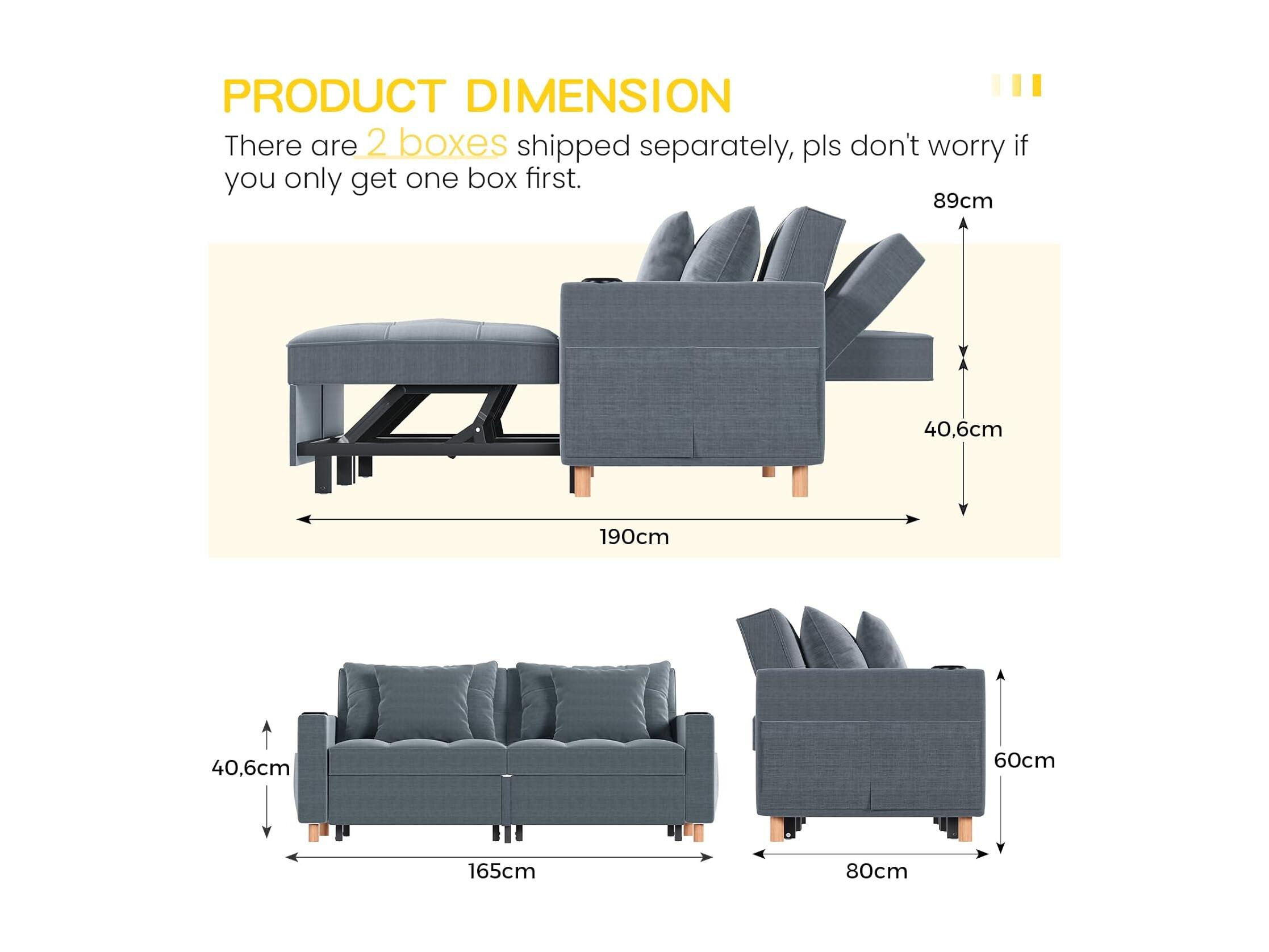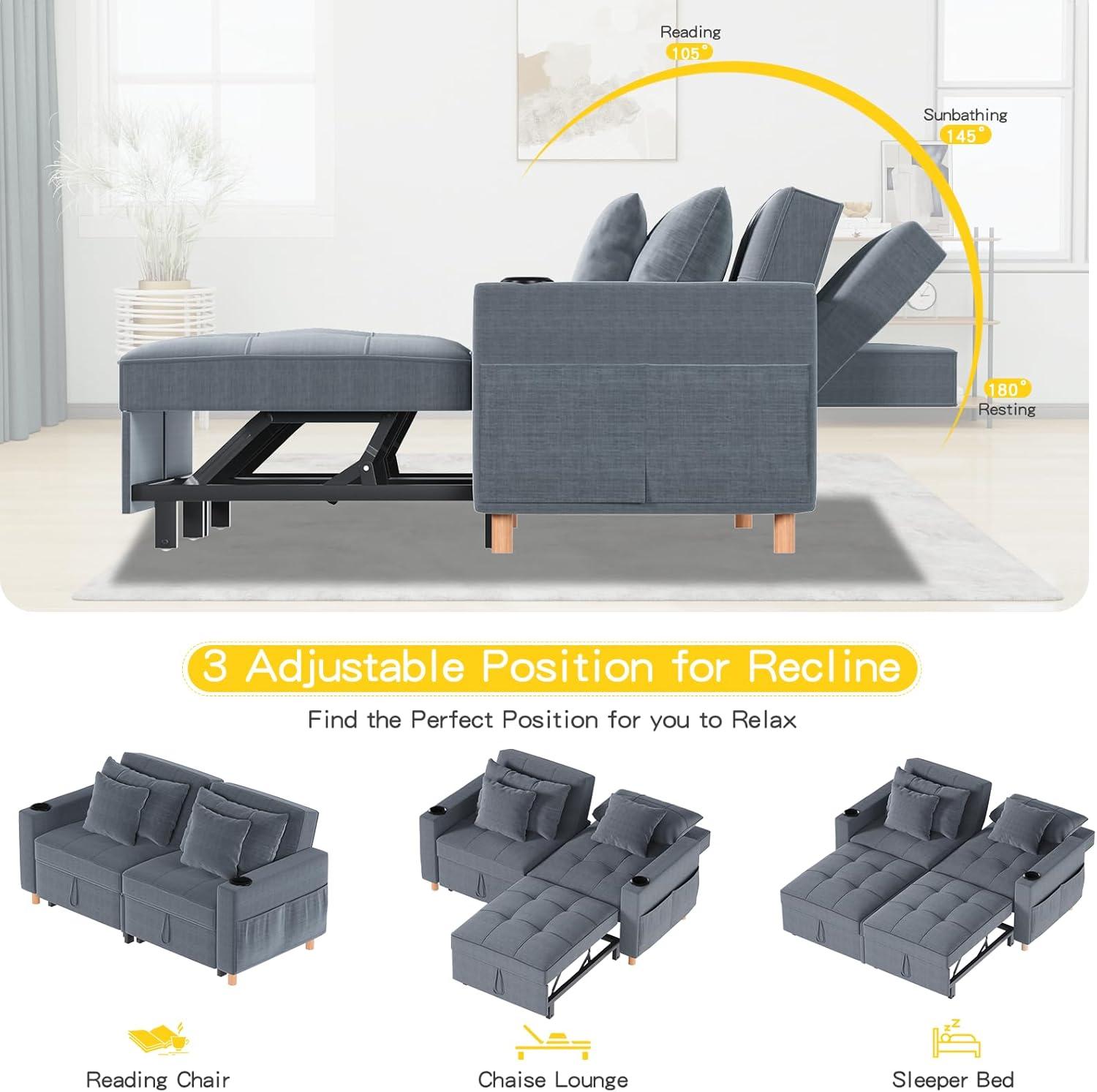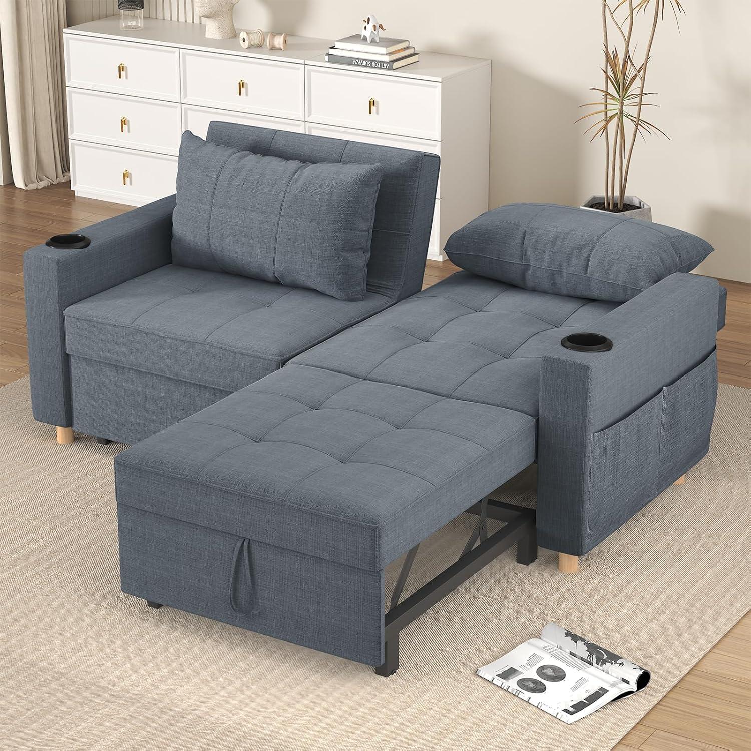 YODOLLA 3-in-1-Sofabett, Doppelschlafstuhl, Umwandelbar, Stoff-Couch, Umwandelbar, 2-Sitzer-Sofabetten für Erwachsene, Dunkelgrau