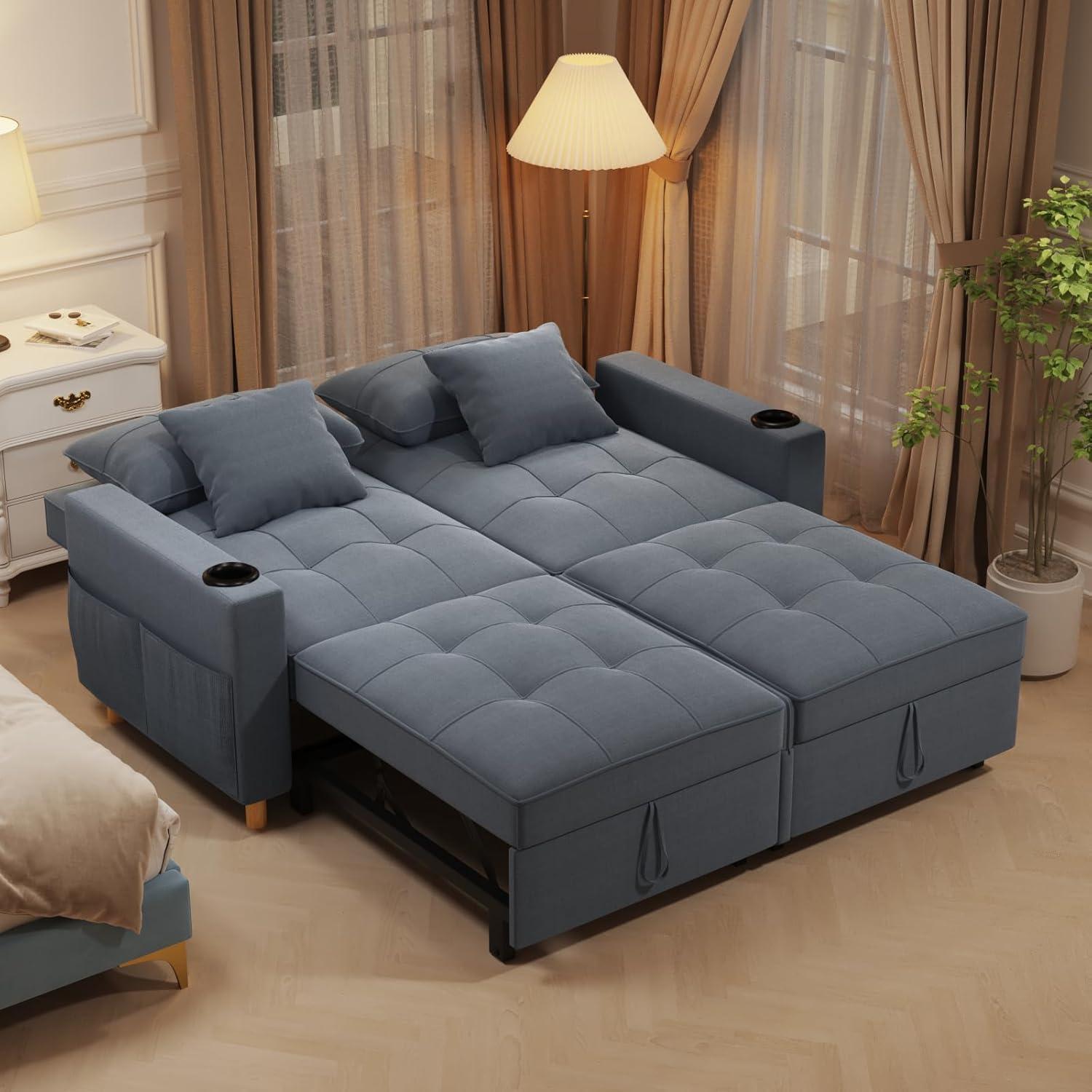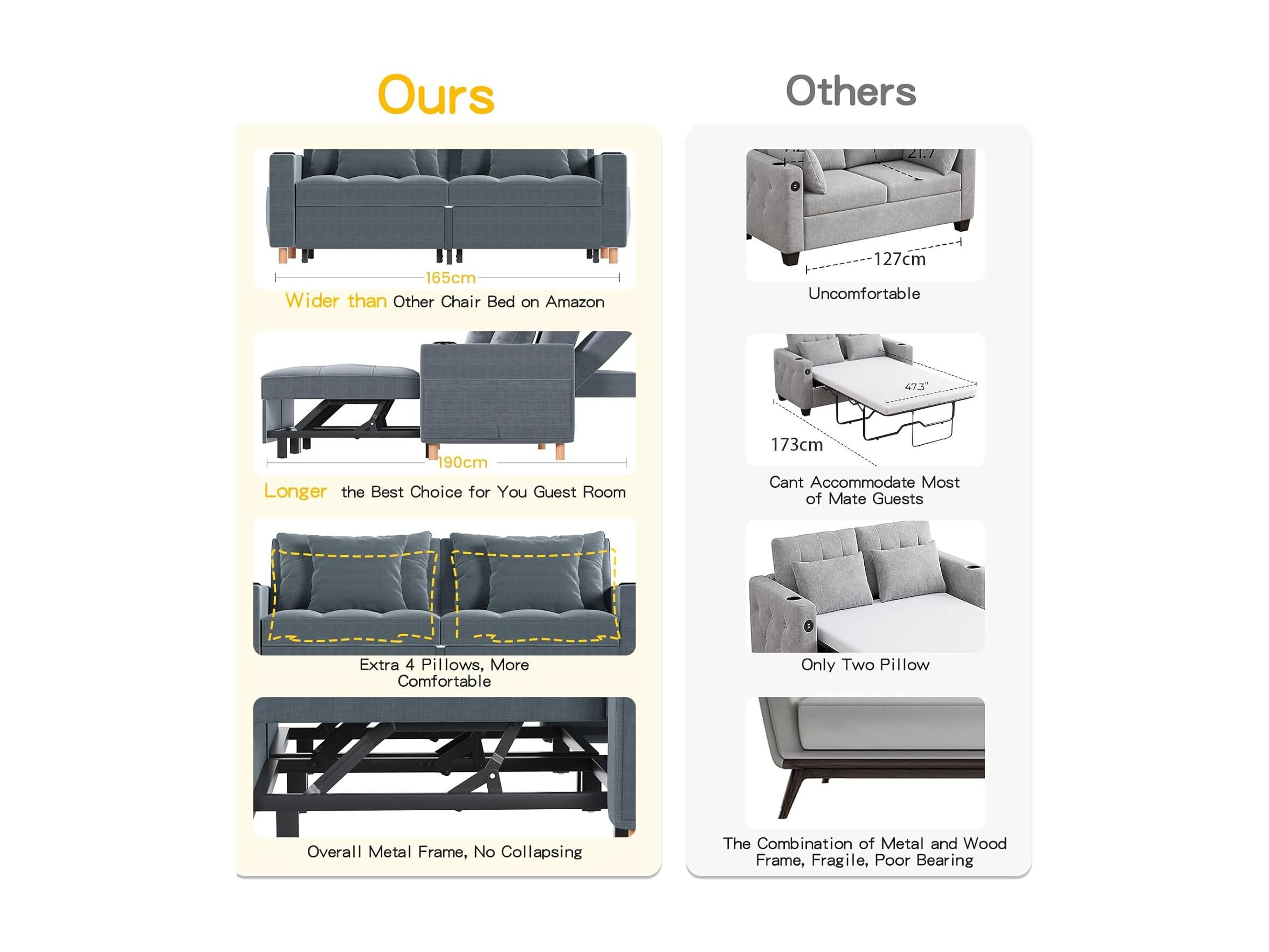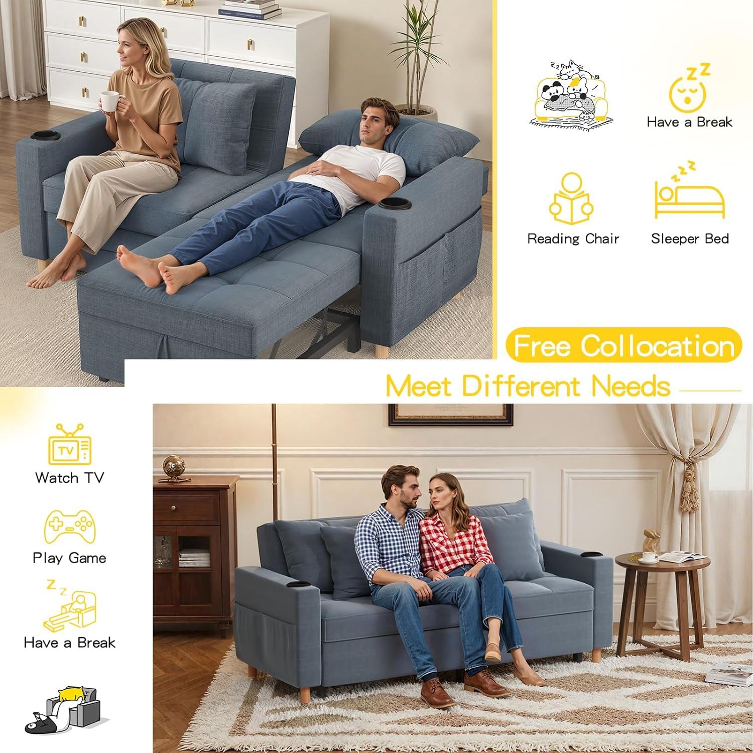 YODOLLA 3-in-1-Sofabett, Doppelschlafstuhl, Umwandelbar, Stoff-Couch, Umwandelbar, 2-Sitzer-Sofabetten für Erwachsene, Dunkelgrau