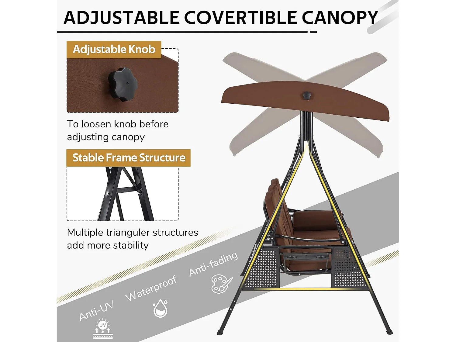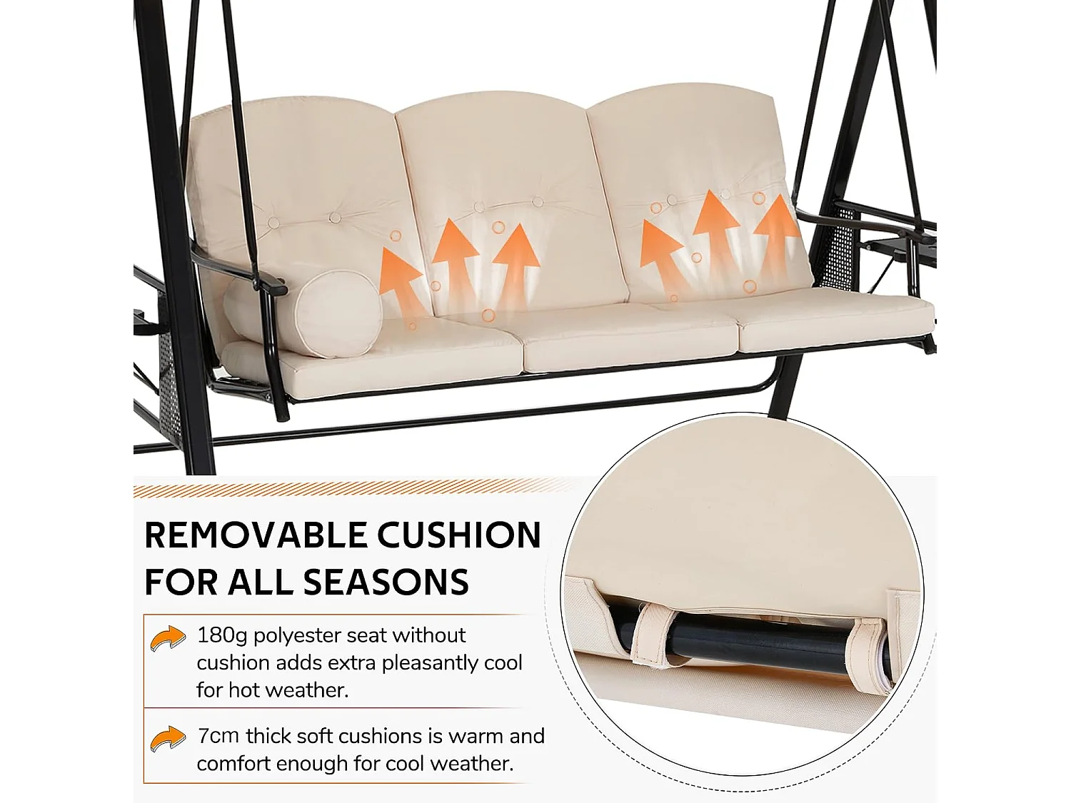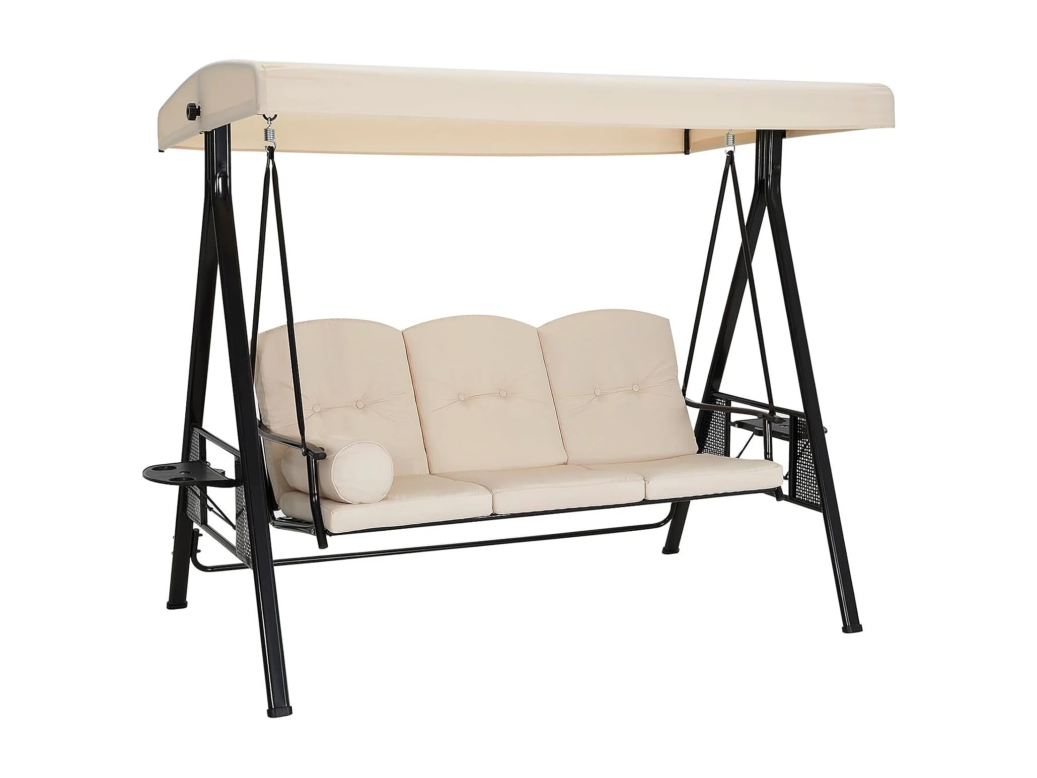 YODOLLA 3-Sitzer Hollywoodschaukel mit verstellbarem Baldachin & abnehmbarem Kissen, für Hinterhof, Garten, Hof, Pool, Balkon, Beige