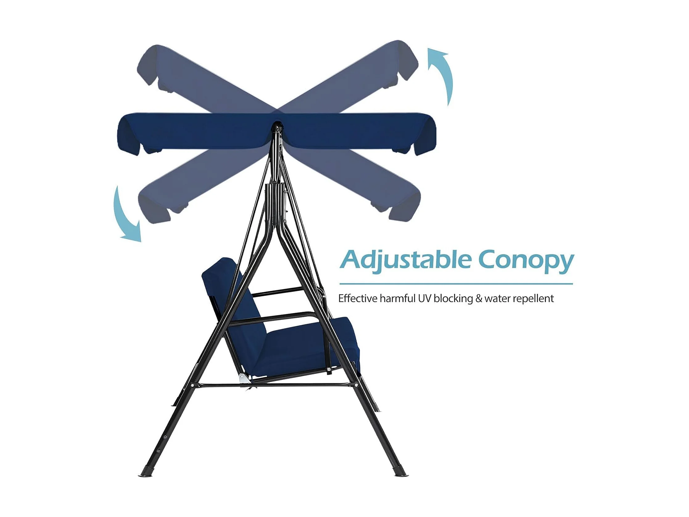 YODOLLA 3-Sitzer Gartenschaukel/Hollywoodschaukel 172x112x150 cm, mit verstellbarem Vordach & abnehmbaren Kissen, Anti-Rutsch-Füße, für Garten & Terrasse, Blau
