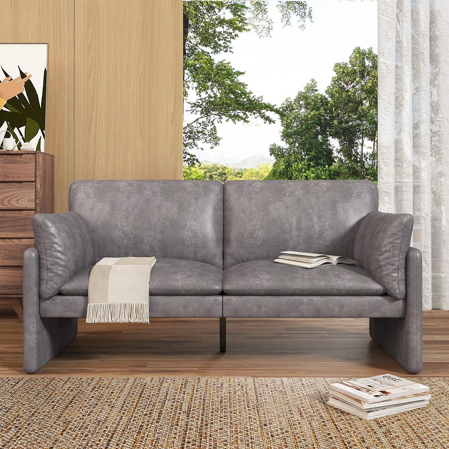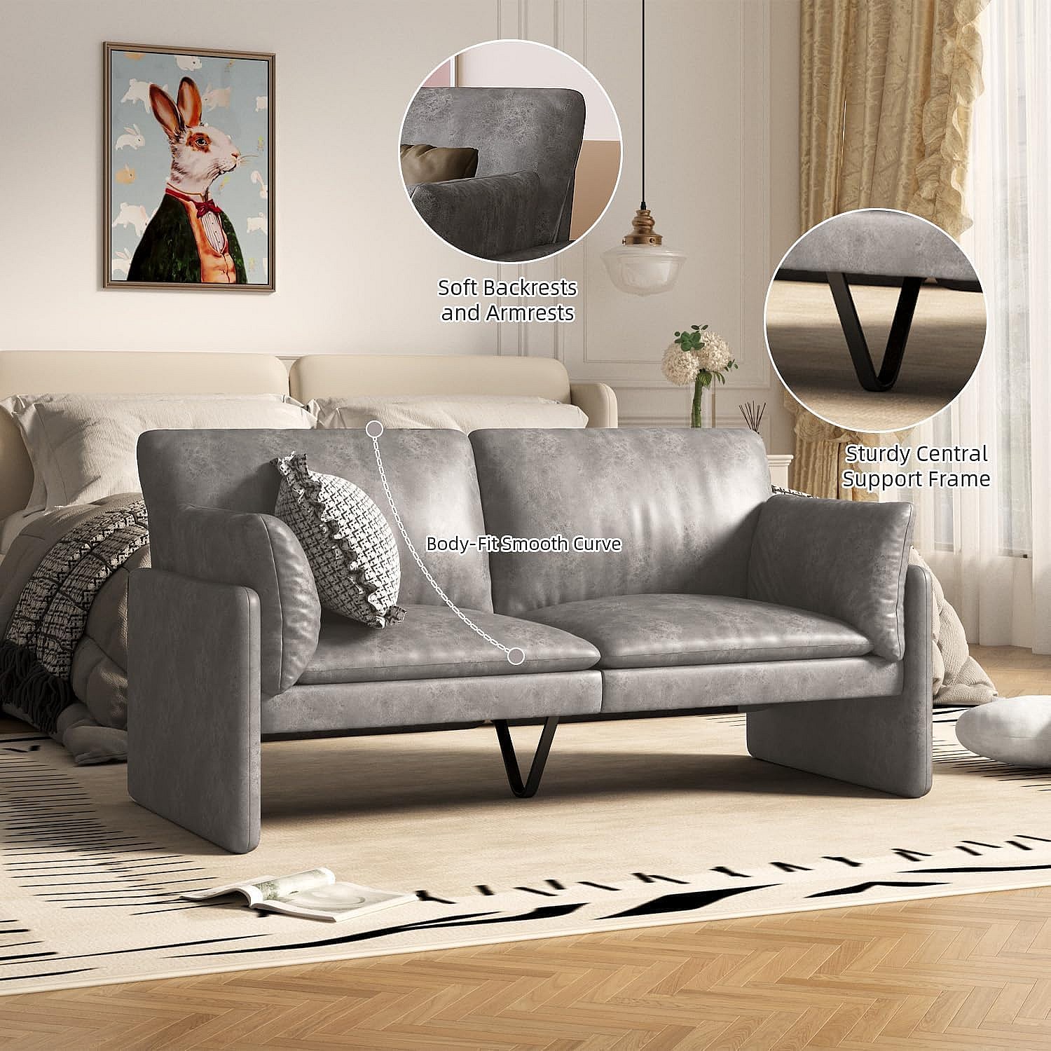 YODOLLA 3-Sitzer Ledersofa in Grau, moderne Couch groß für Wohnzimmer. Ideal für Wohnung, Schlafzimmer oder Home-Office.