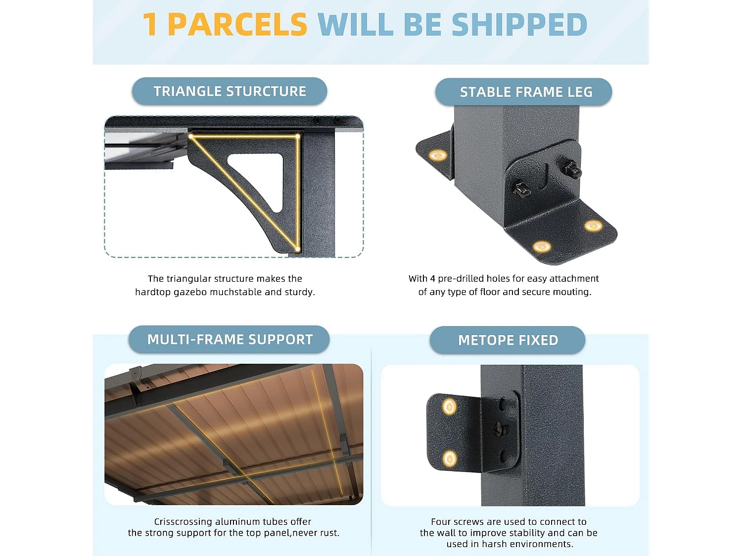 YODOLLA Aluminium-Pavillon, Metallmarkisen, Pavillons, Pergola, Robuste Metall-Pergola (Schwarz, 2,4 x 1,5m)
